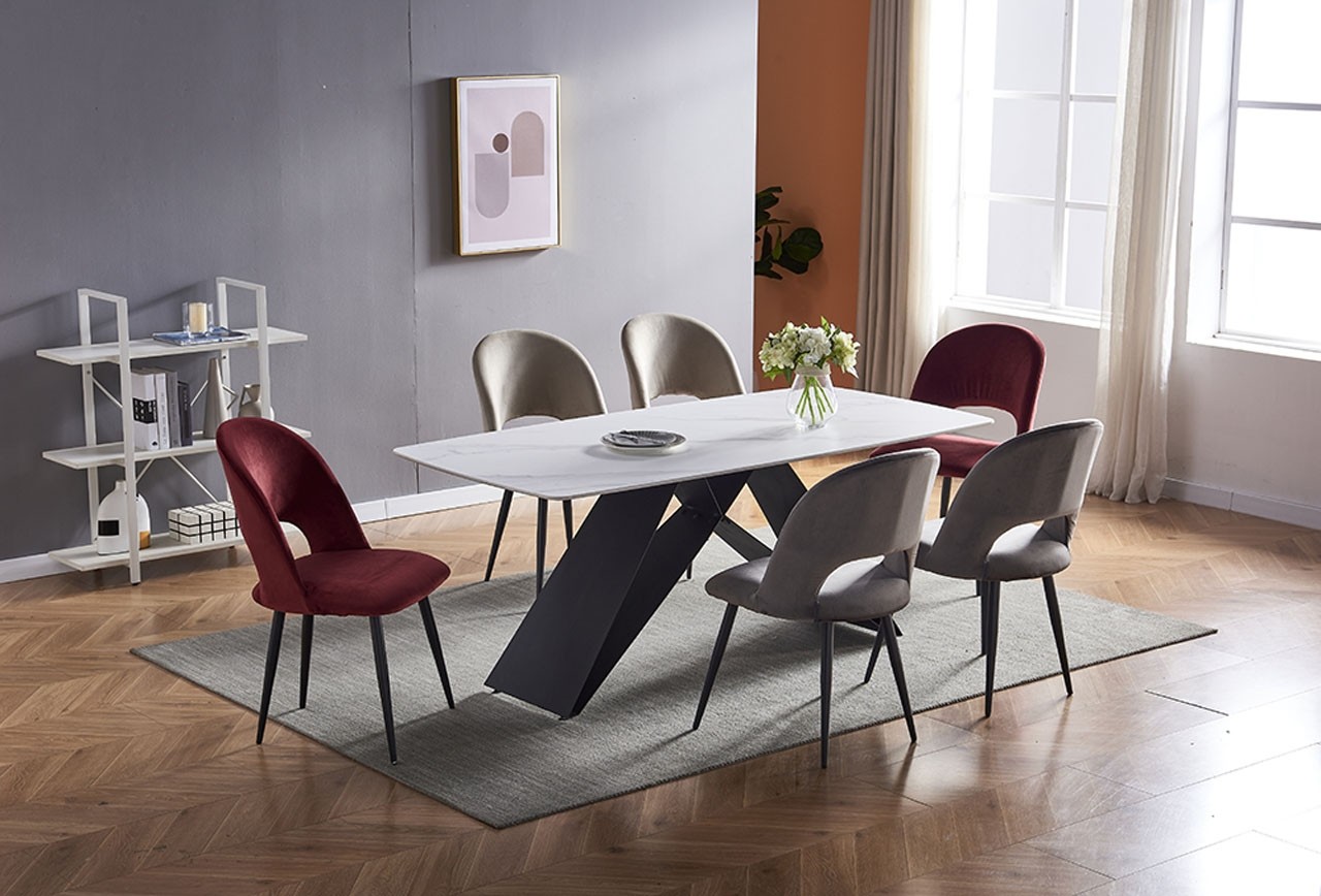Prekrasan dizajn mramorne ploče i moderno dizajnirane noge blagovaonskog stola AMAYA impresionirati će Vas i Vaše najmilije, te modernizirati Vašu kuhinju i blagovaonicu. Ploča je izrađena od kvalitetne keramike što joj nudi dobar izgled i kvalitetnu izradu.