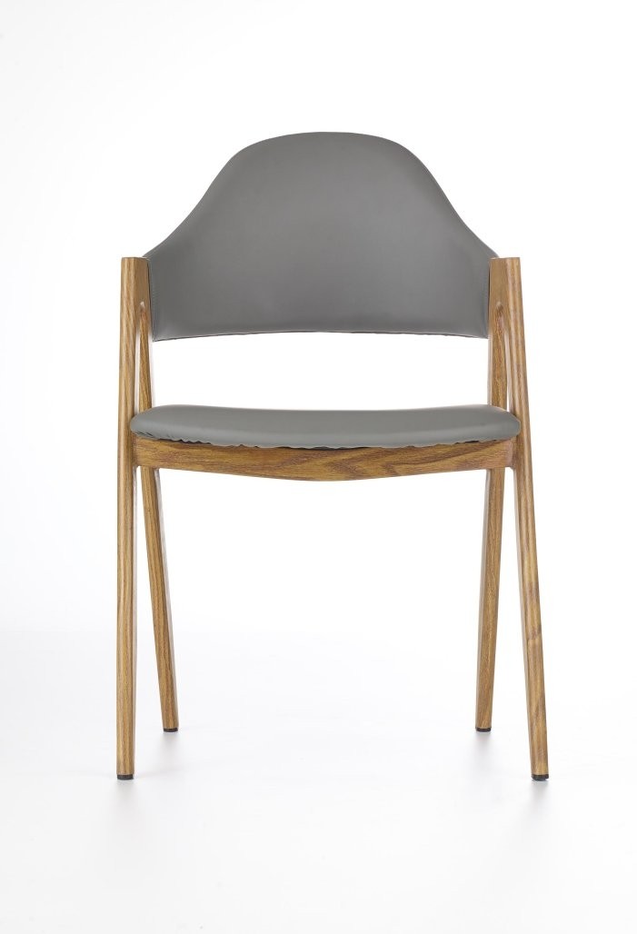 Stol Brin spaja bijelo sjedište od umjetne kože i okvir od obojenog čelika u tonu medenog hrasta. Visina sjedišta od 45 cm i ravne noge osiguravaju stabilnost i stil, prikladan za skandinavske interijere.