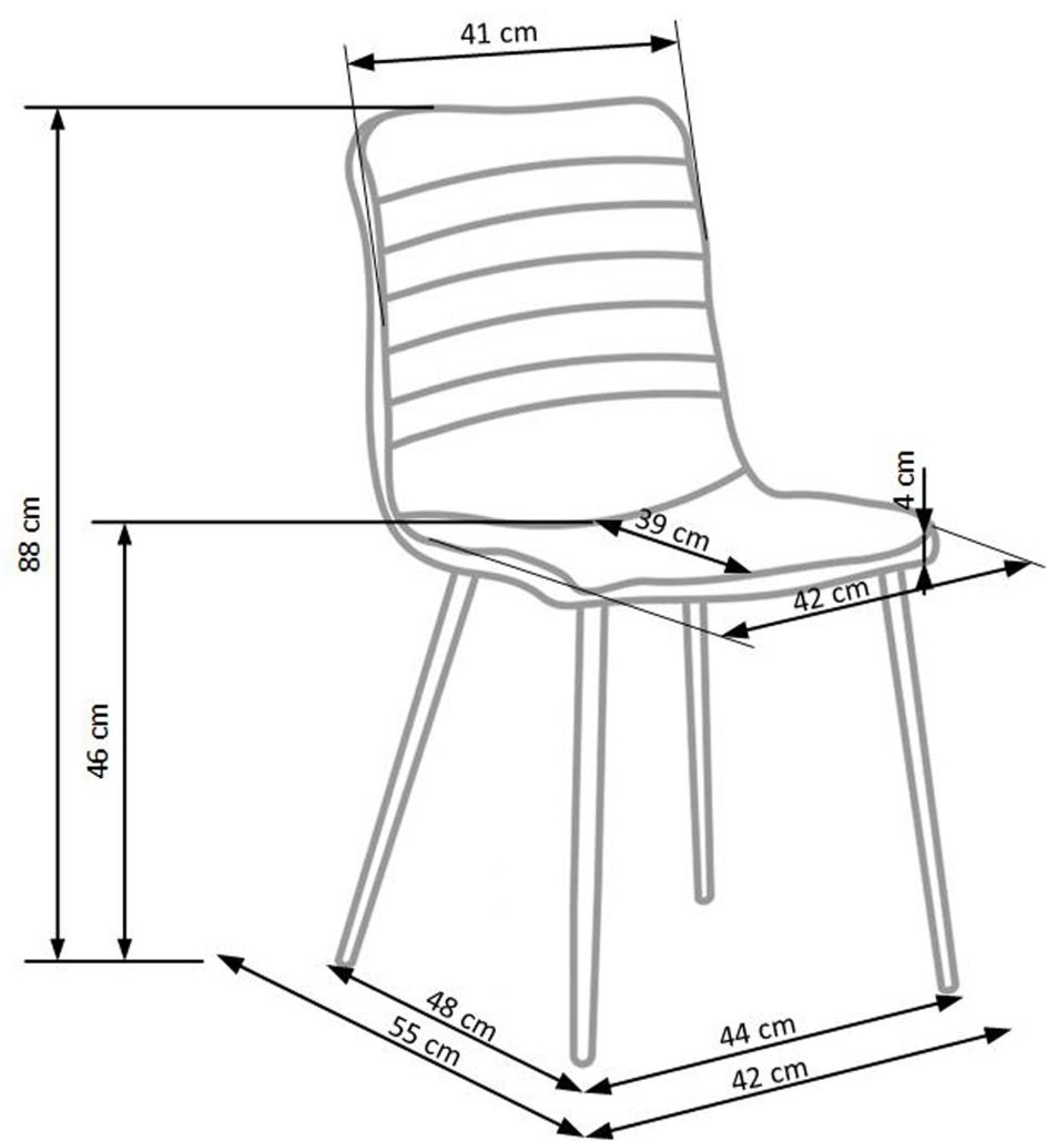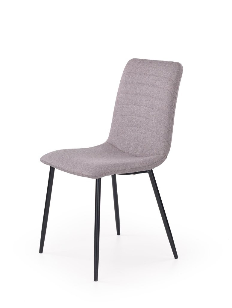 Stol Delo s presvlakom u sivoj tkanini i praškasto lakiranim crnim okvirom donosi dašak suvremenosti. Visina sjedišta od 46 cm, ravne noge i okrugli profil okvira omogućavaju jednostavan, ali elegantan izgled.