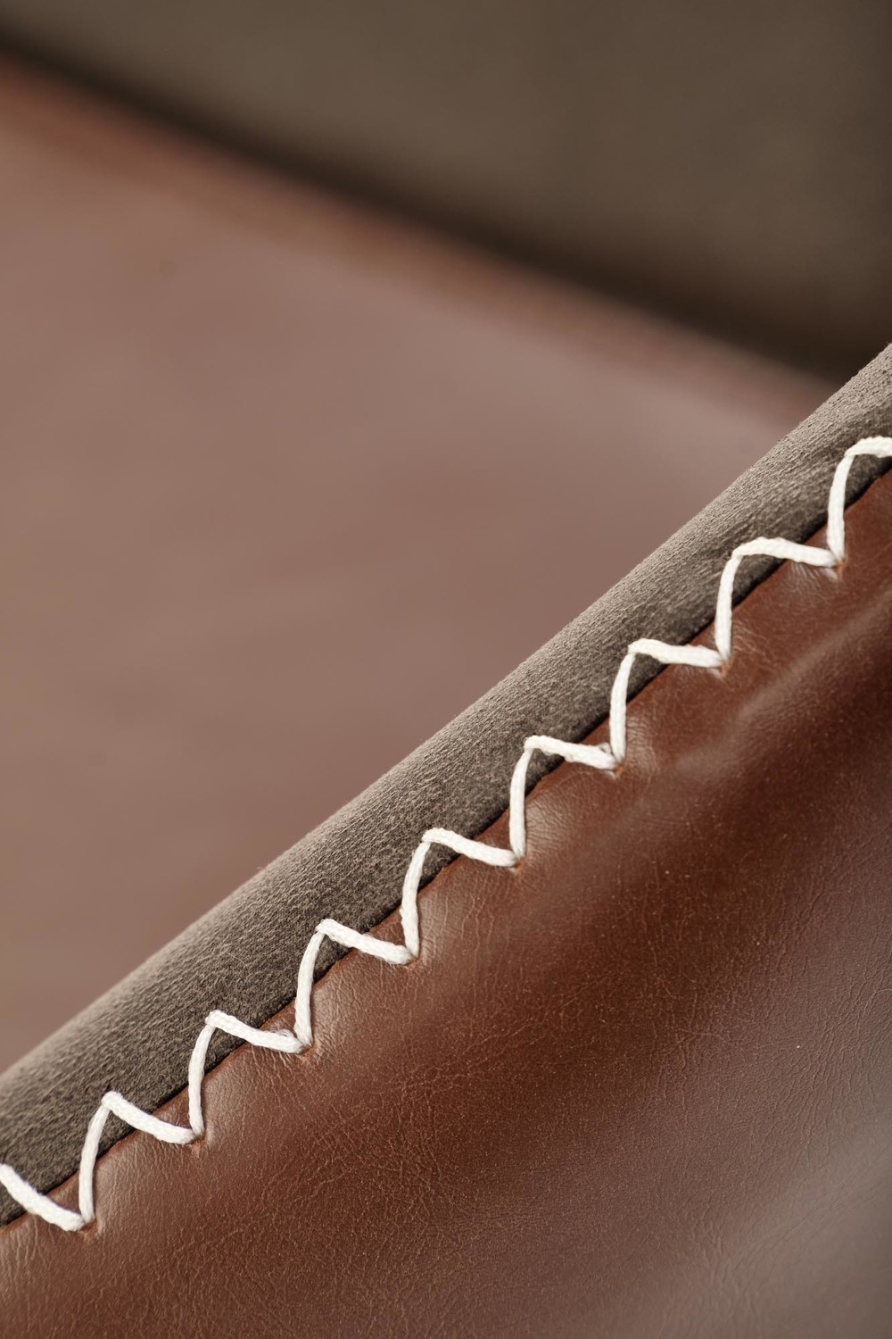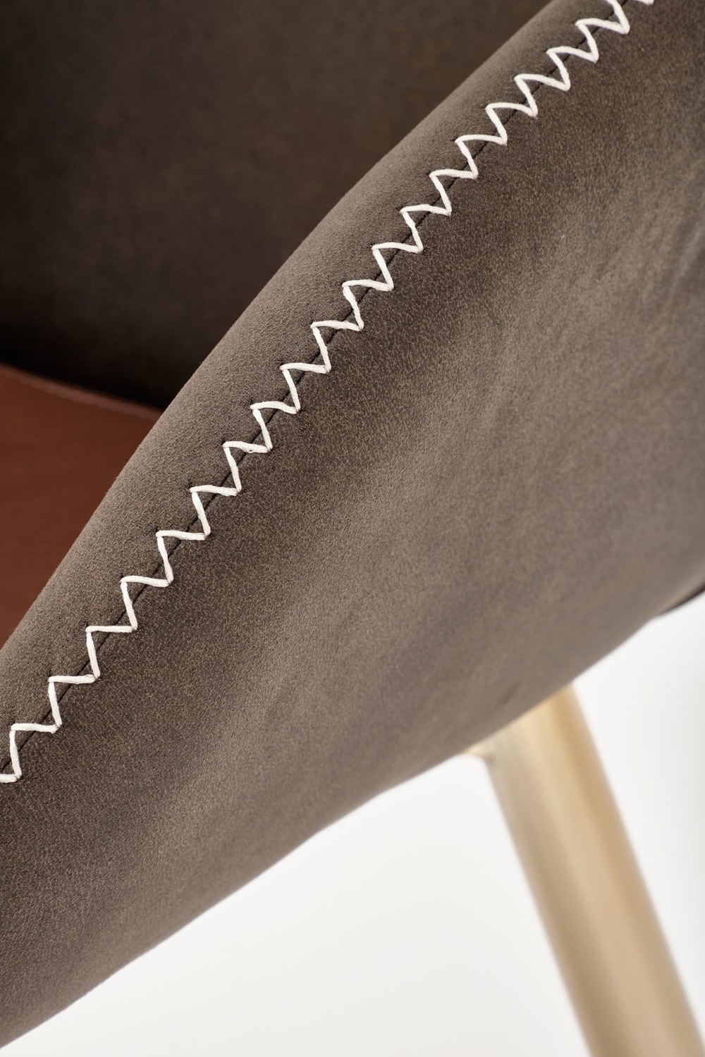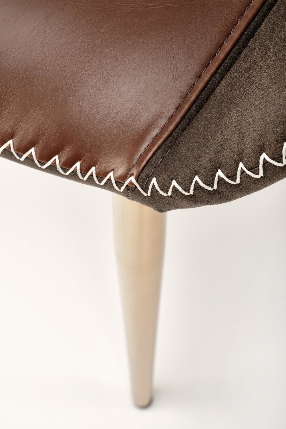 Stol Dilo s presvlakom u tamno sivoj i smeđoj boji od umjetne kože te bakreno obojenim kromiranim nogama donosi moderan izgled. Visina sjedišta je 47 cm.