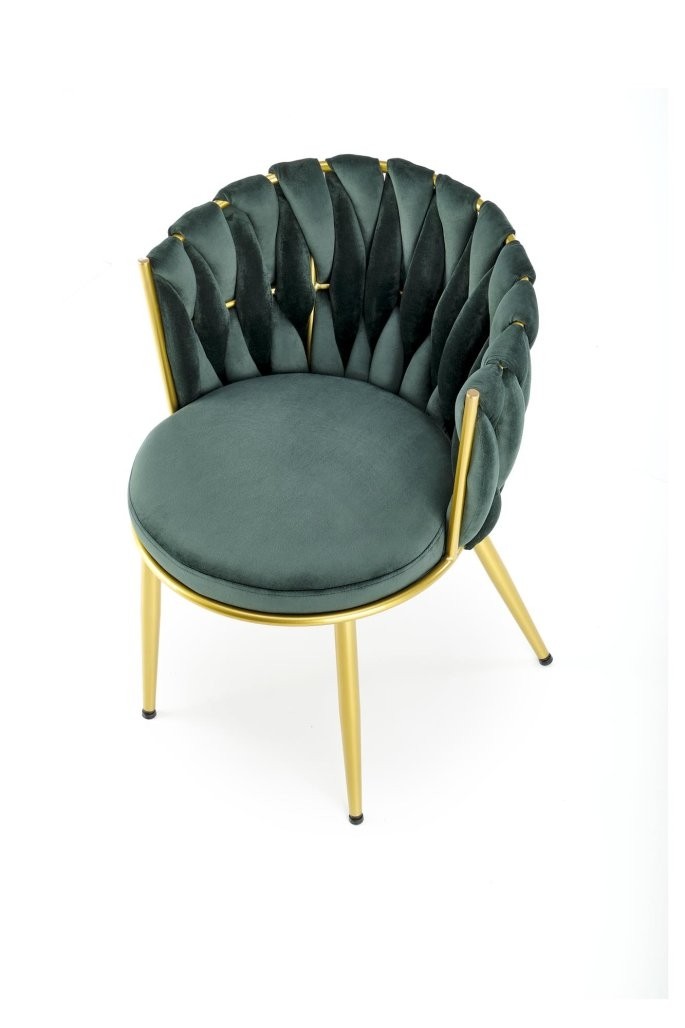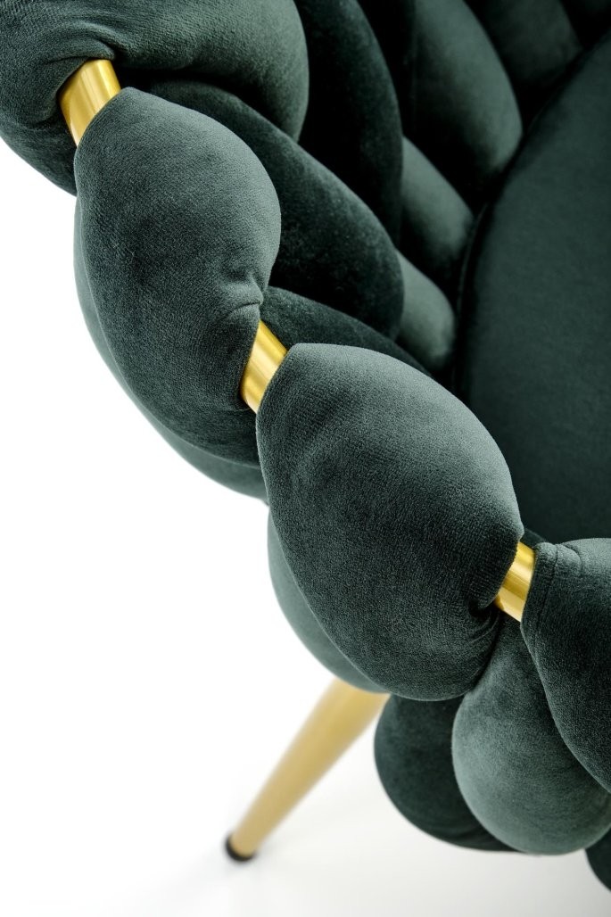 Stolica Elmar s presvlakom od tamnozelenog baršuna i zlatnim okvirom unosi moderan izgled u prestižnu atmosferu u blagovaonici.