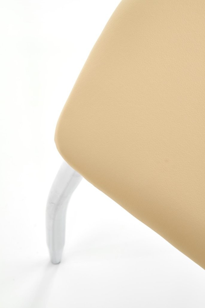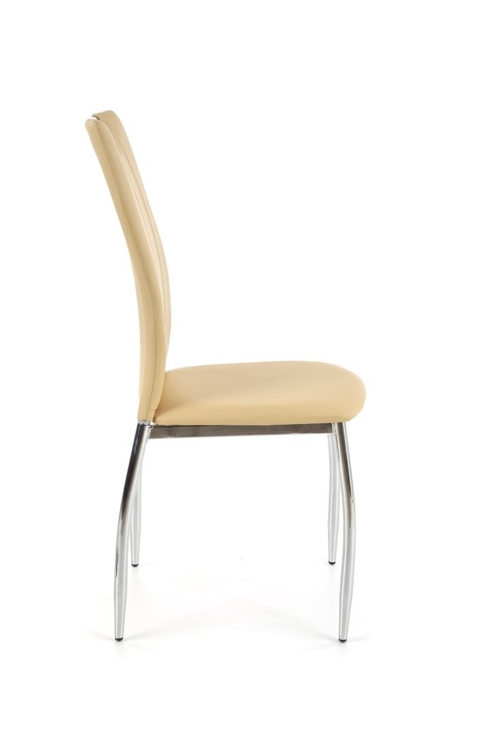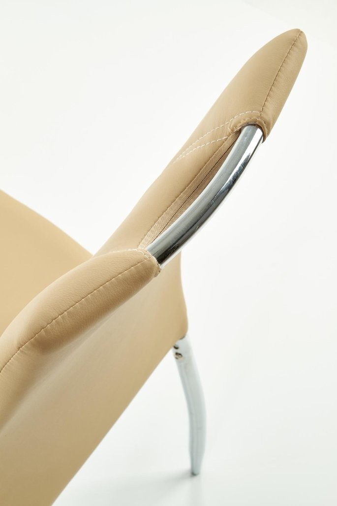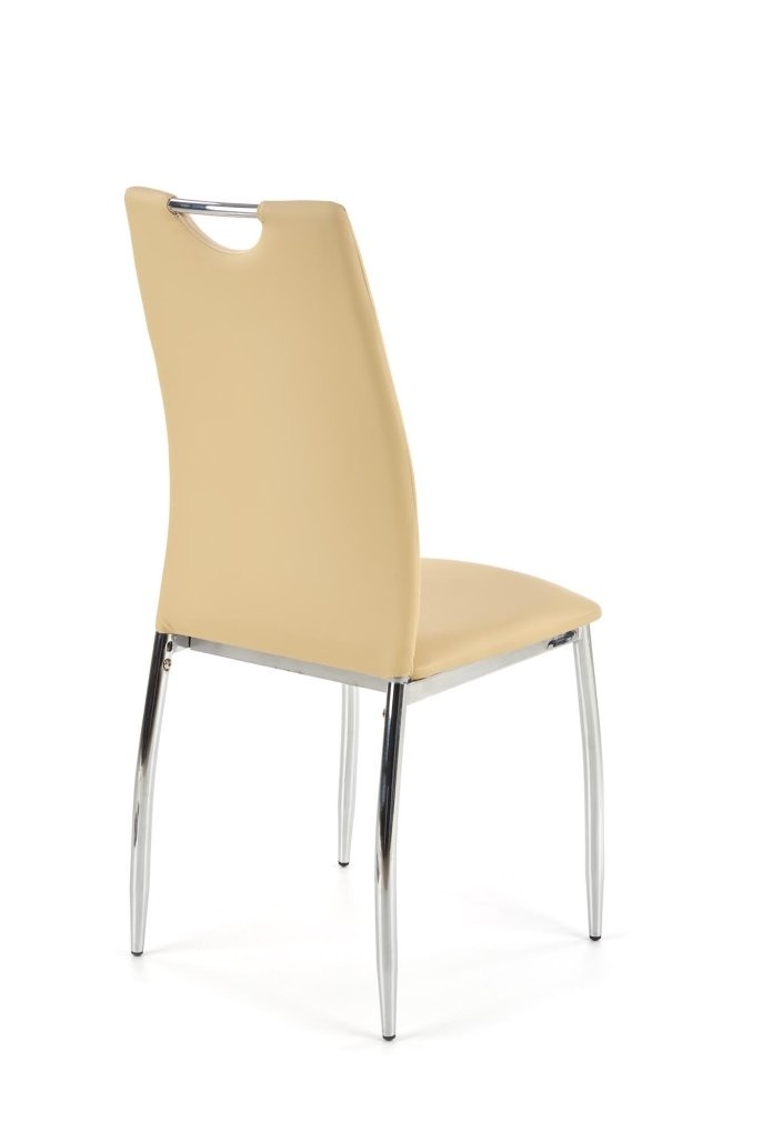 Stol Gilo s elegantnom bež umjetnom kožom, kromiranim okvirom i visinom sjedišta od 45 cm dostupan je u različitim bojama. Prikladan za suvremene prostore gdje dodaje dašak prestiža i funkcionalnosti.