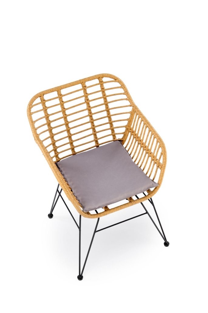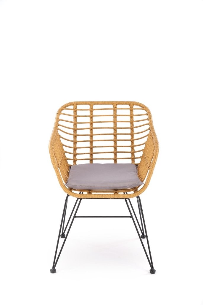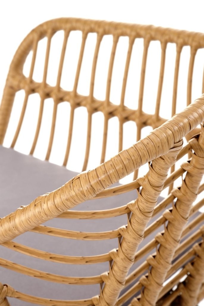 Stol Jaren od sintetičkog ratana i tkanine u prirodnoj i sivoj boji. Izvrstan za unutarnju i vanjsku upotrebu, s izdržljivim metalnim okvirom.
