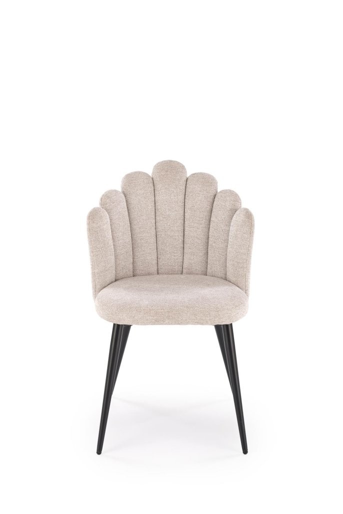 Stol Kalor u modernom stilu, tapeciran tkaninom, je dostupan u bež i sivoj boji. Donosi jednostavan i elegantan izgled s robusnim crnim metalnim okvirom.