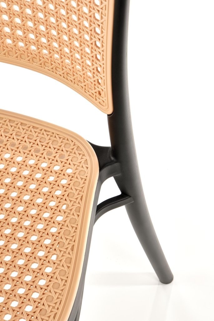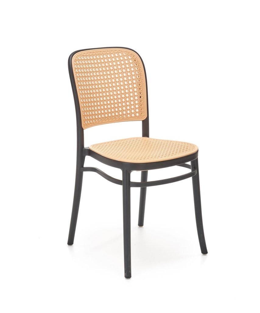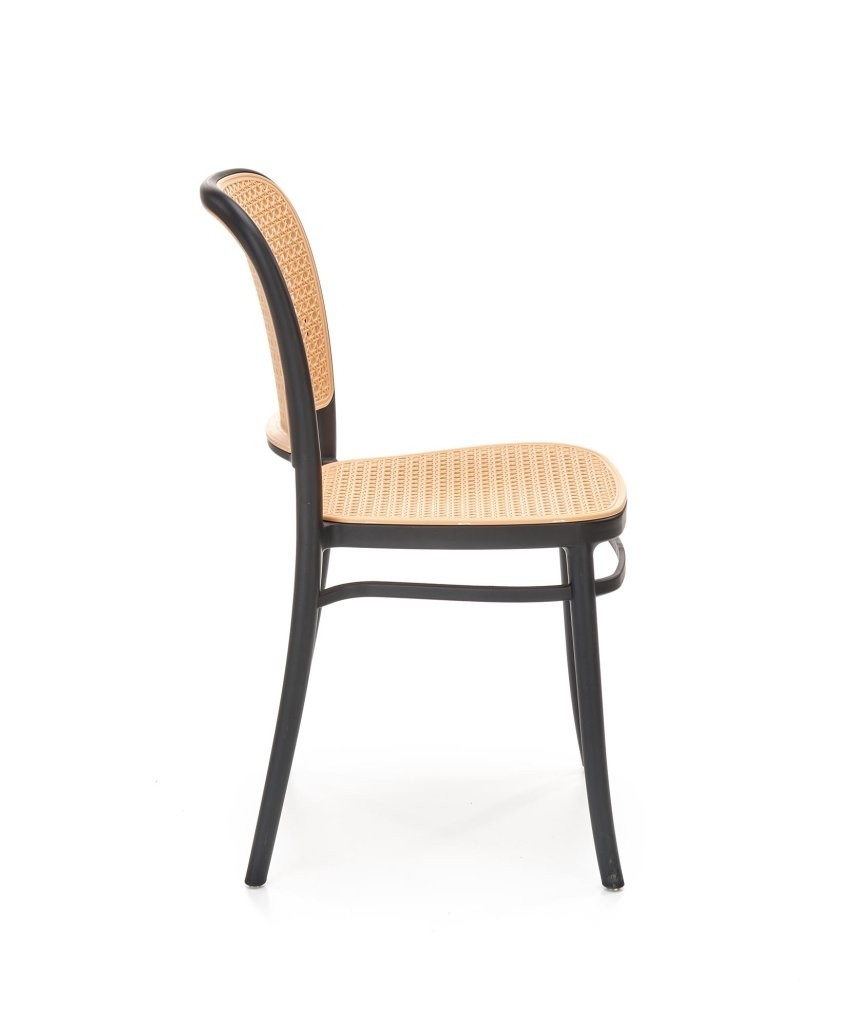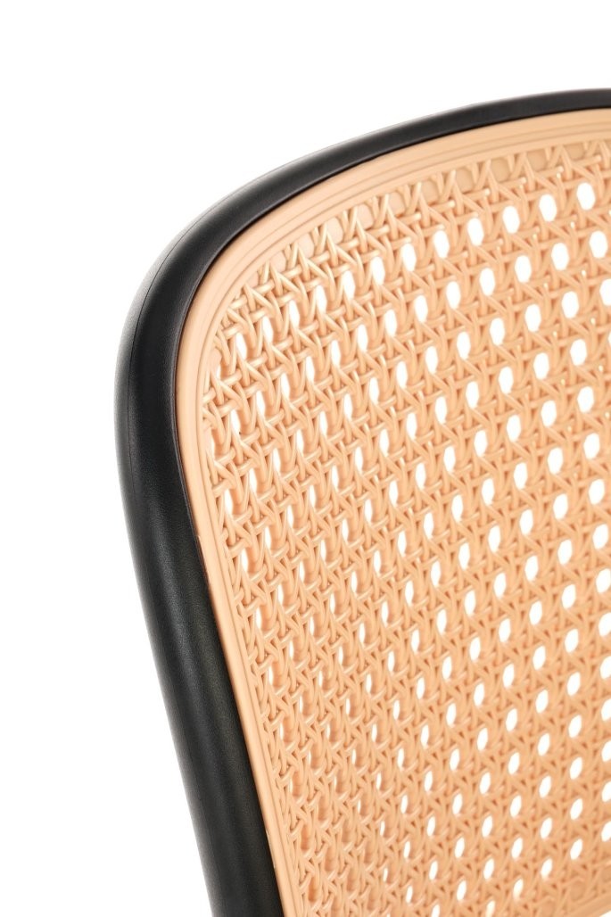 Stolica Leno s prirodnim dizajnom bez presvlaka. Izrađena od polipropilena i metala, s crnim okvirom. Boho i skandinavski stil spojeni u jednom praktičnom stolcu.