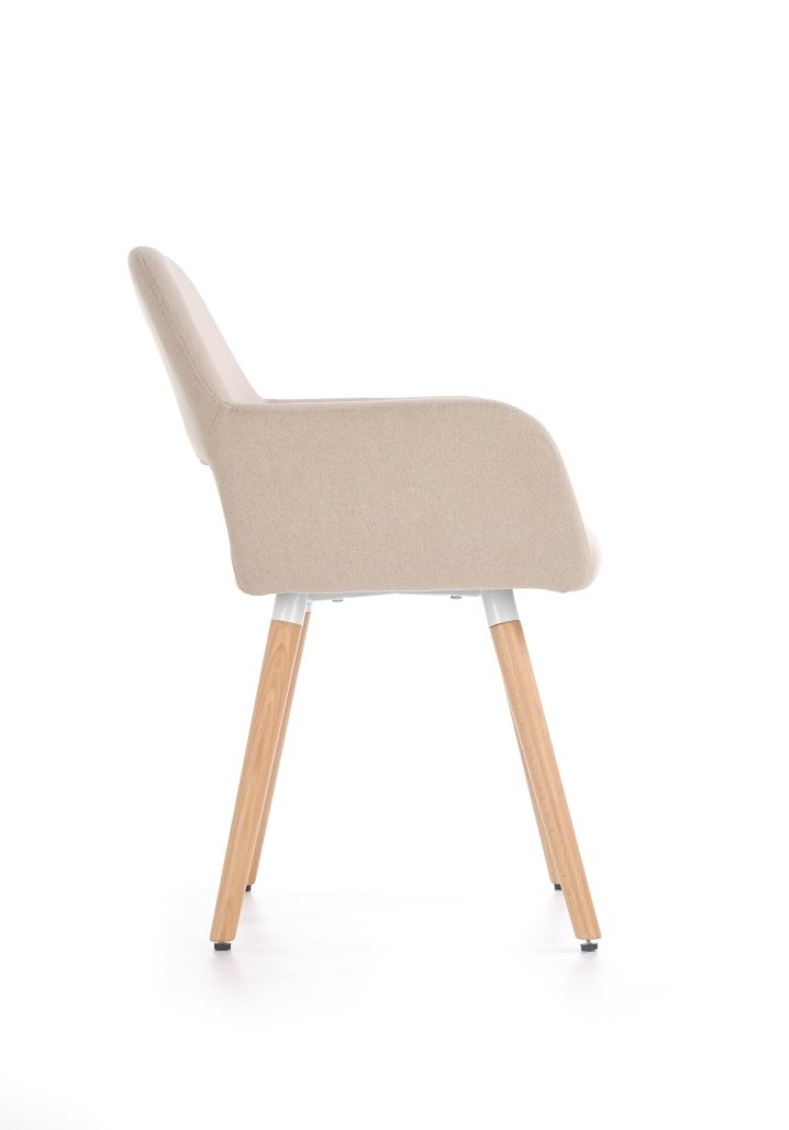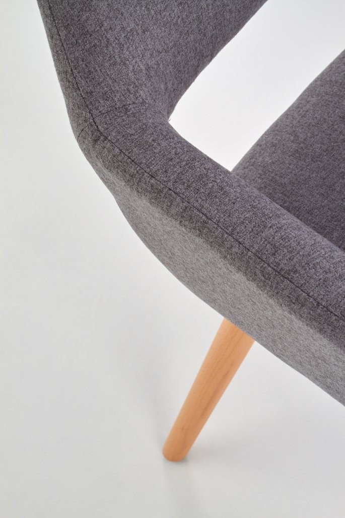 Stol Moro s presvlakom u bež ili sivoj tkanini te okvirom od masivnog drveta dodaje prirodni ugođaj prostoru. Visina sjedišta od 48 cm i skandinavski stil pružaju elegantan izgled.