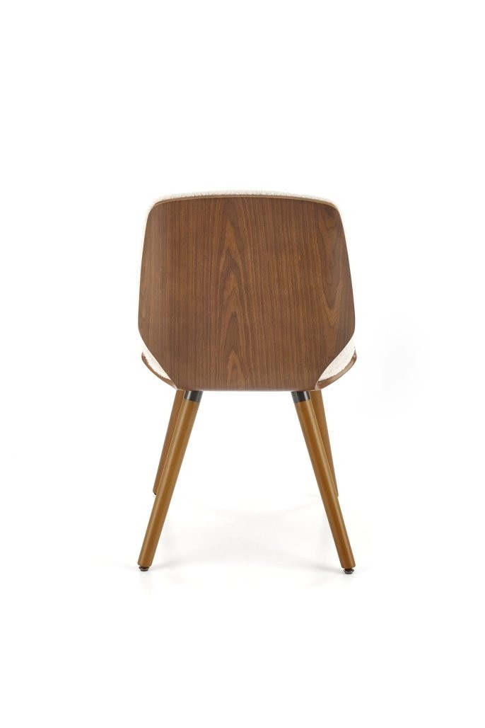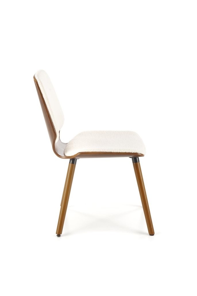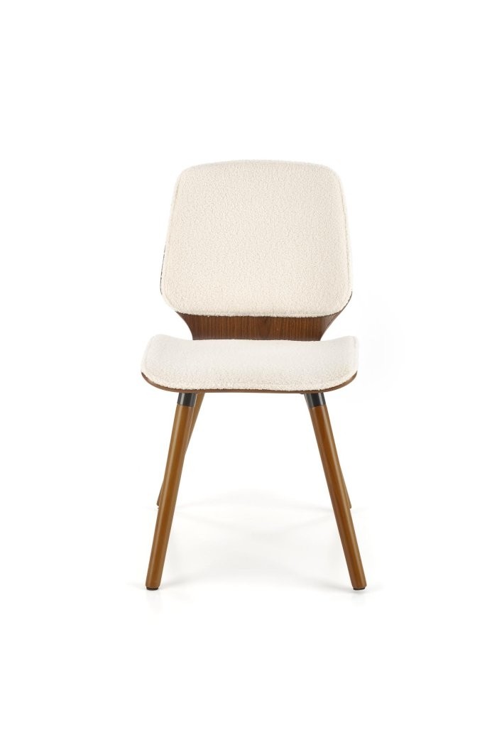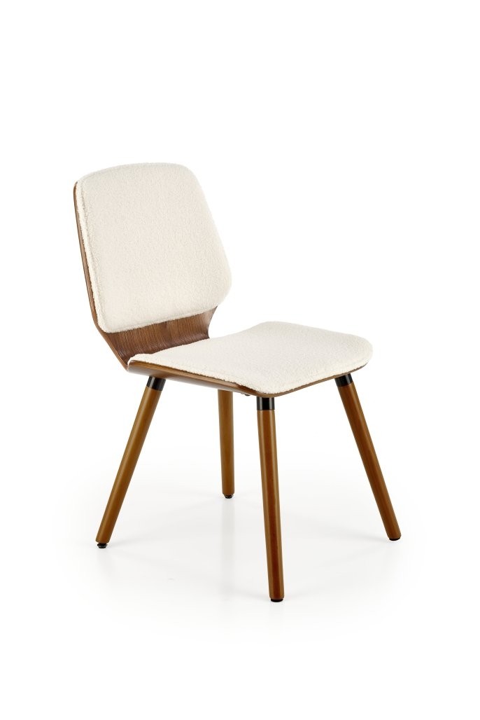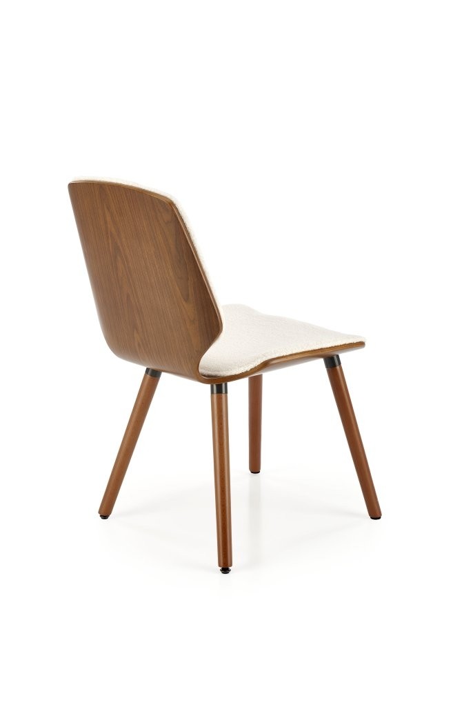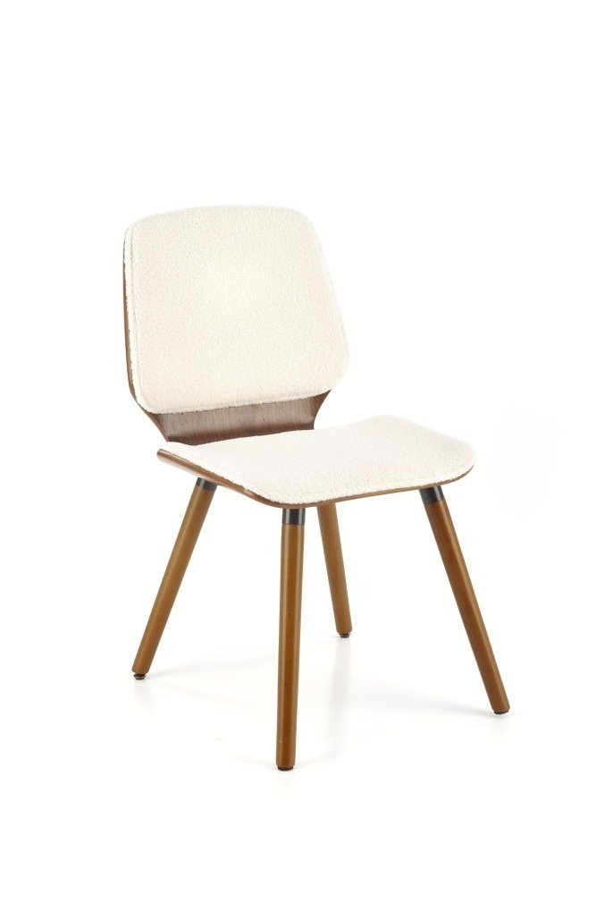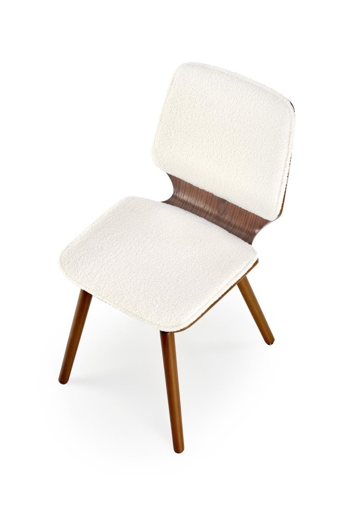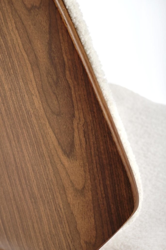 Stol Pelor s bouclé tkaninom i masivnim drvom, u kombinaciji kreme i oraha, donosi mekoću i toplinu u suvremeni prostor.