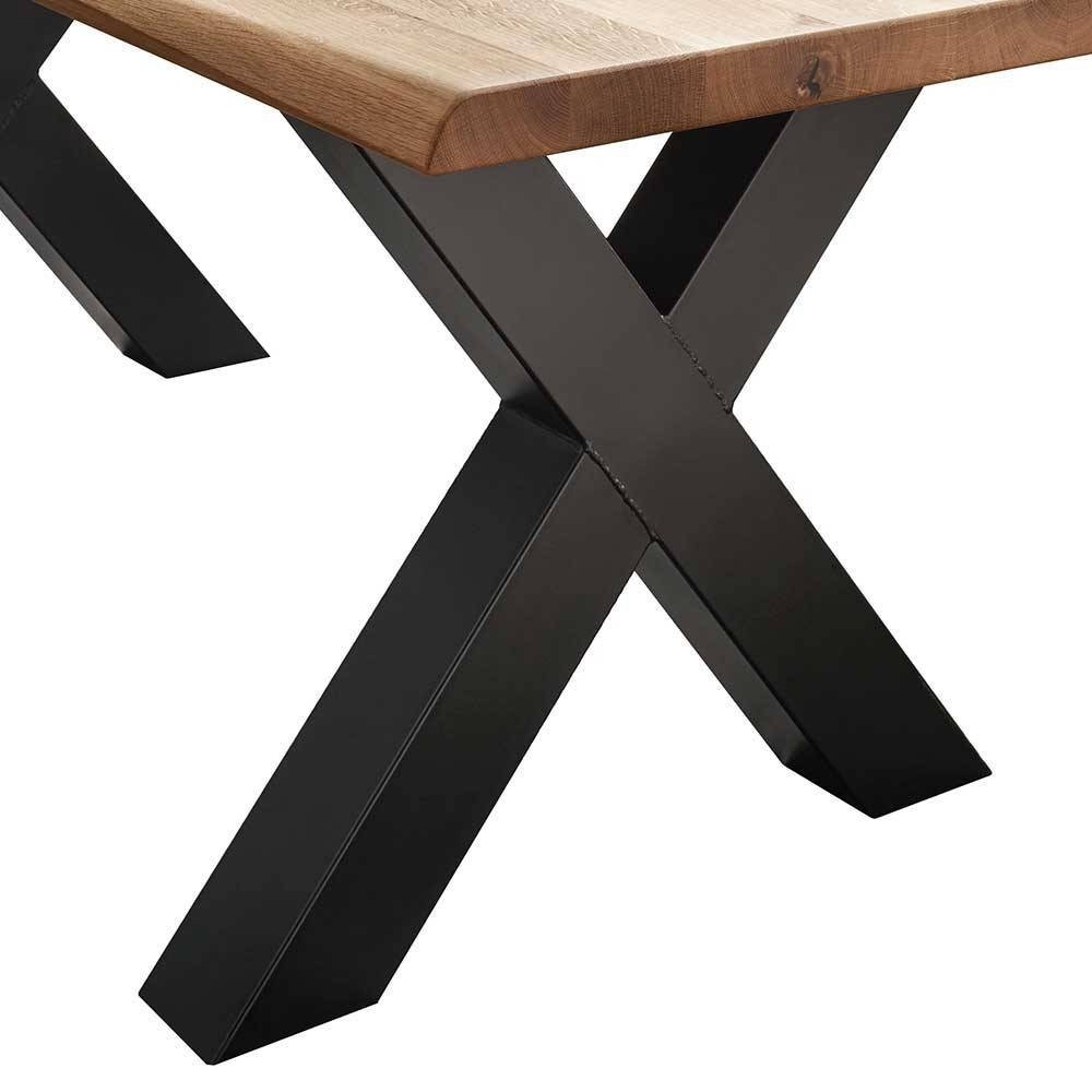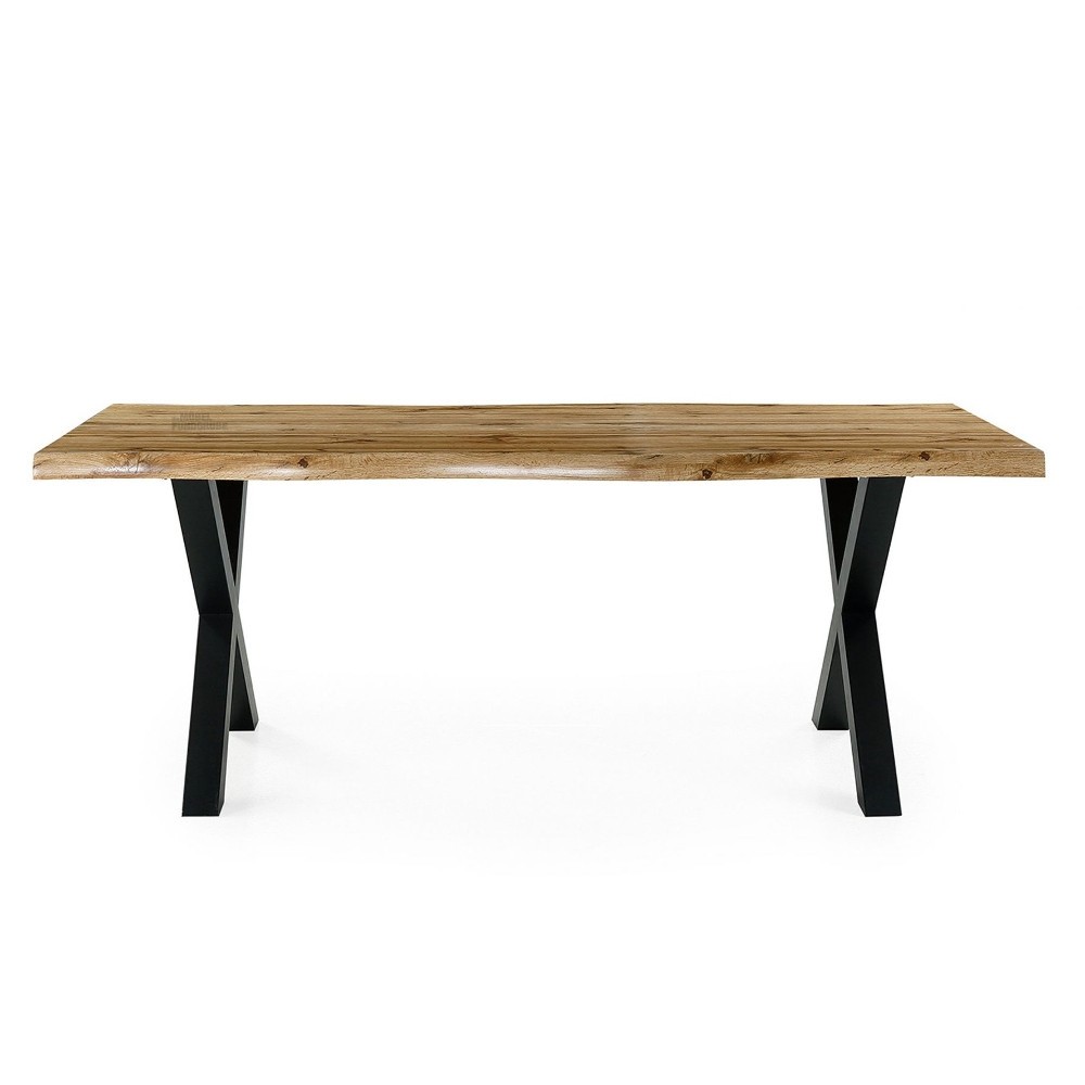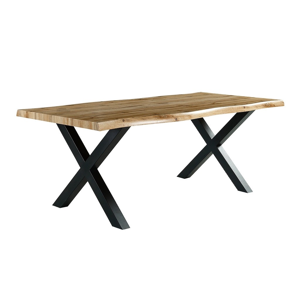 Blagovaonski stol RAMBLA 40 oduševit će sve koji vole robustan i prirodan izgled namještaja. Ovaj veliki blagovaonski stol izrađen je od punog hrastovog drva i ima live edge rub koji naglašava njegov organski i prirodan izgled. Dostupan je u dvije različite dimenzije, svaka s pločom debljine 40 mm i metalnim nogama u obliku slova X.