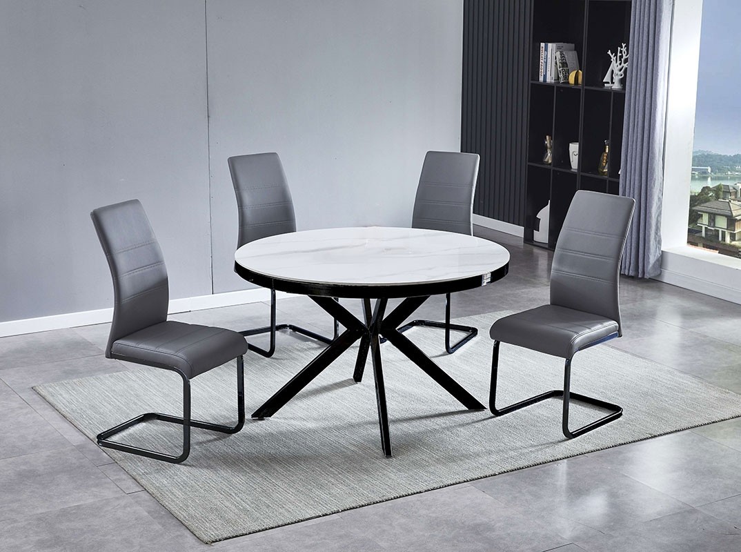 Stol REHEN 1 dostupan je u bijeloj boji i promjera je 120 cm. Stolna ploča izrađena je od bijelog sinteriranog kamena debljine 12 mm. Ploča stoji na crnim metalnim nožicama. Sinterirani kamen u načelu je jači i teže se lomi, a ujedno je i prozirniji za okoliš od kemijski obrađenih kvarcnih ploča.