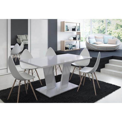 Stol REHEN 2 dostupan je u bijeloj boji i promjera je 133 cm. Stolna ploča izrađena je od bijelog sinteriranog kamena, debljine 12 mm. Ploča stoji na crnim metalnim nožicama. Sinterirani kamen je u načelu jači i teže se lomi. Dodatna prednost je što je ekološki prihvatljiviji od kemijski obrađenih kvarcnih ploča.
