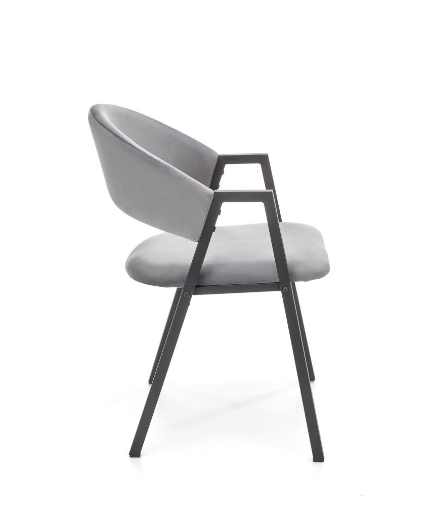 Stolica Soli s modernim industrijski dizajnom, dostupna u tamnozelenoj i sivoj boji. Baršunaste navlake i metalni okvir stvaraju elegantan i udoban komad.
