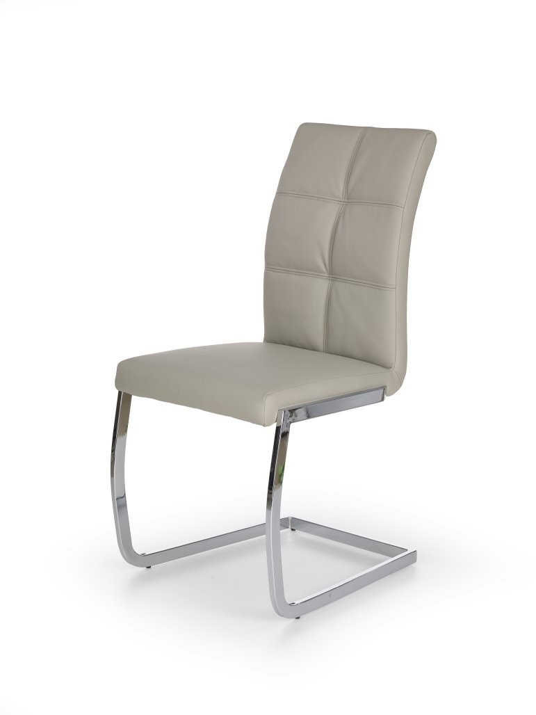 Stol Taro s presvlakom u svijetlo sivoj boji i kromiranim metalnim okvirom pruža suvremeni izgled. Visina sjedišta od 50 cm i U-oblik nog idealni su za elegantne blagovaonice i moderne urede.