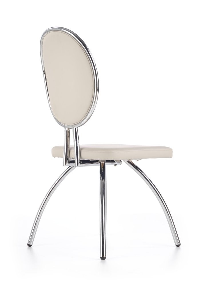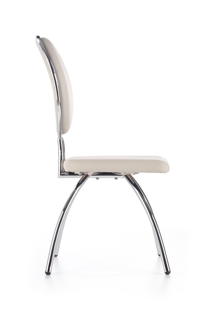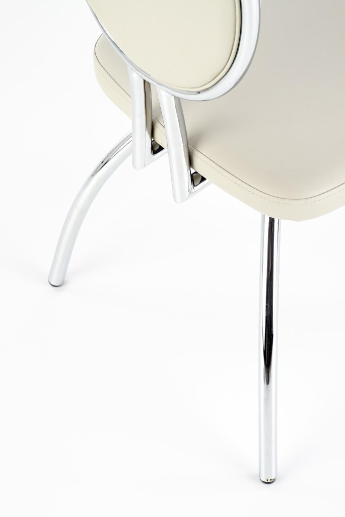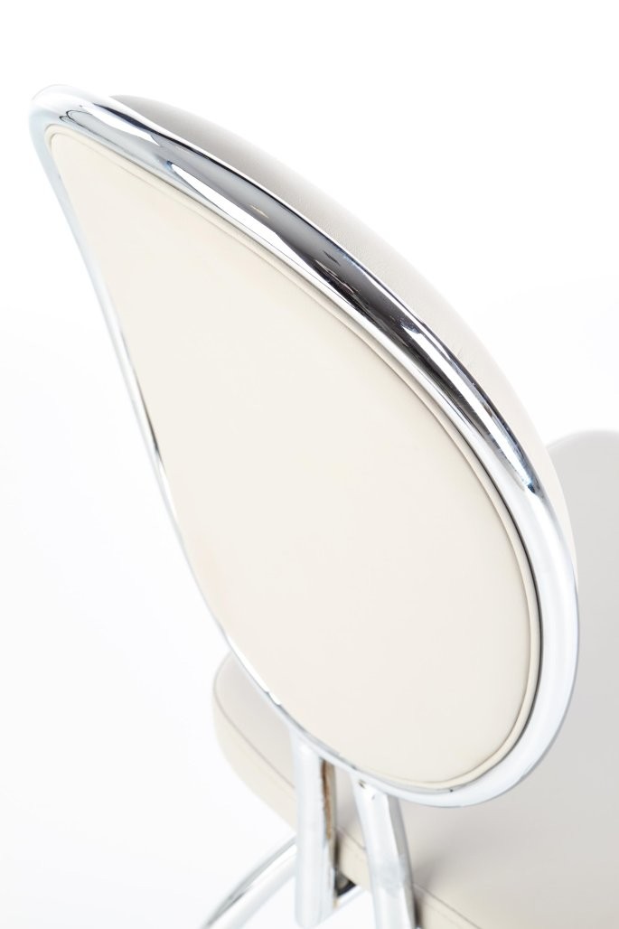 Stol Viro od svijetlo sive umjetne kože i kromiranog metalnog okvira. Visina sjedišta od 46 cm i kružno oblikovane noge donose moderan i klasični stil.