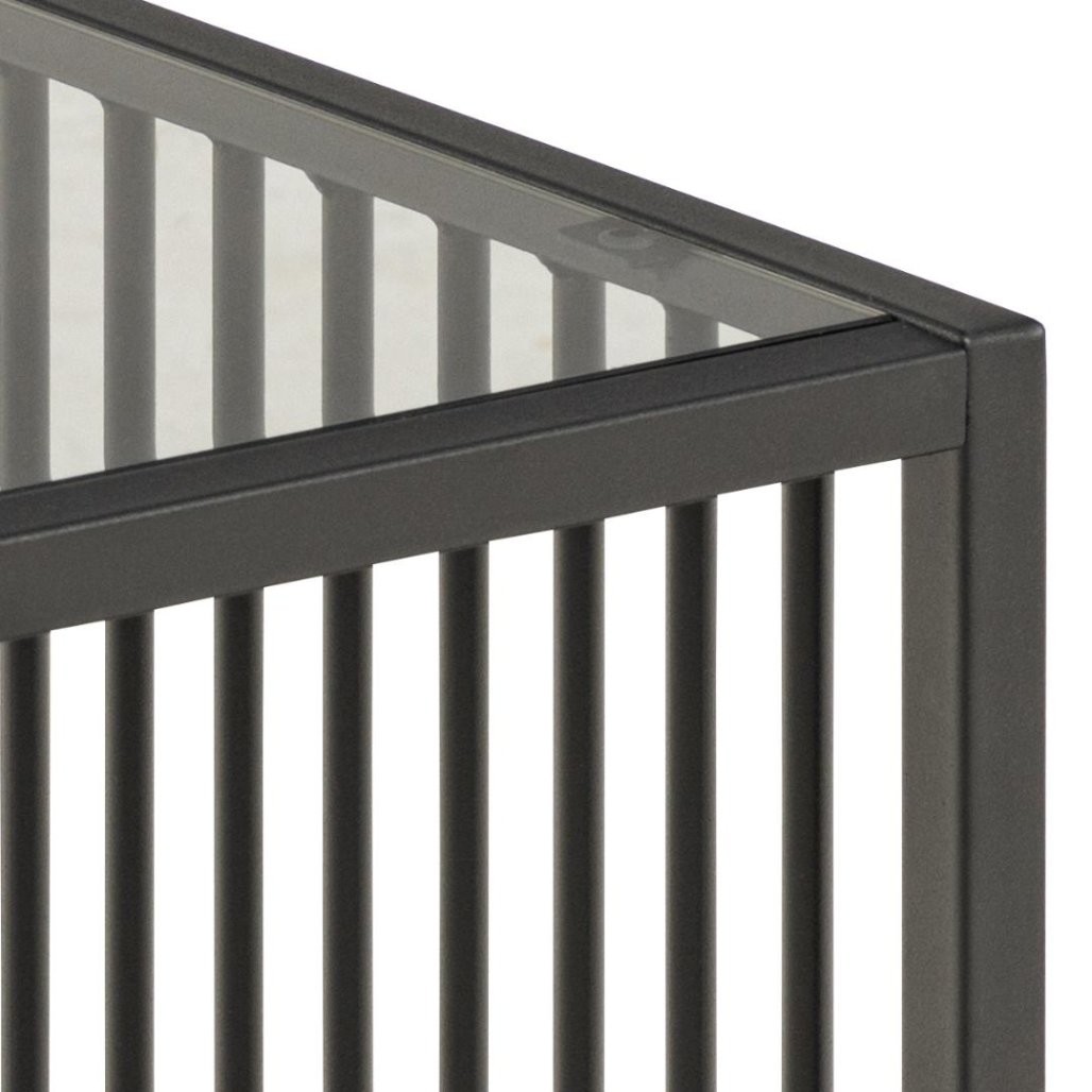 Jeste li razmišljali o promjeni stolića za kavu? Onda pogledajte BUTRONI stolić za kavu. Njegov dizajn s metalnim letvicama i uporaba matiranog kaljenog stakla na površini ne samo da privlače pozornost, već i dodaju sofisticiranost i stil. Stol se može koristiti kao ukrasni element ili kao prikladna površina za pohranu predmeta.