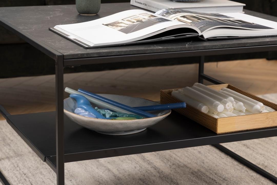 Počastite se kvalitetnim GASPARD stolićem za kavu. Prekrasan dizajn, imitacija mramora i crni metalni okvir učinit će stolić prikladnim za gotovo svaki dnevni boravak. Stol čak uključuje i policu za dodatnu pohranu na koju možete staviti knjige ili društvene igre.