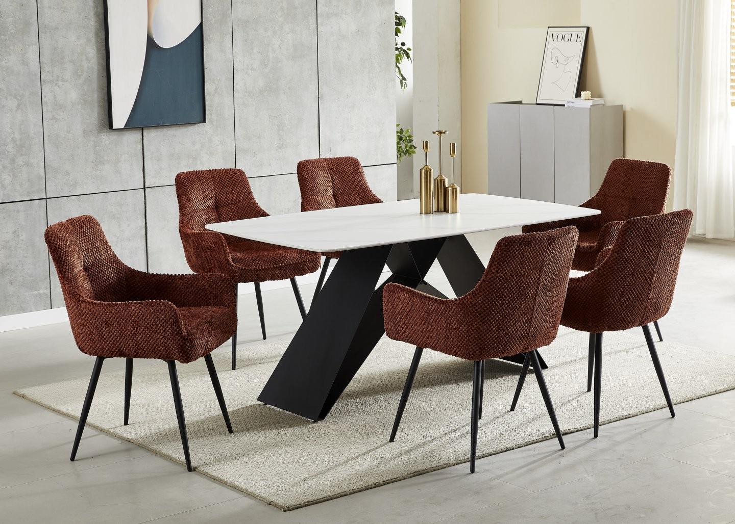 Stolica LUIS (smeđa) je moderni blagovaonski stol koji kombinira eleganciju i izdržljivost. Njegova presvučena tkanina i privlačan dizajn uljepšat će svaku blagovaonicu.