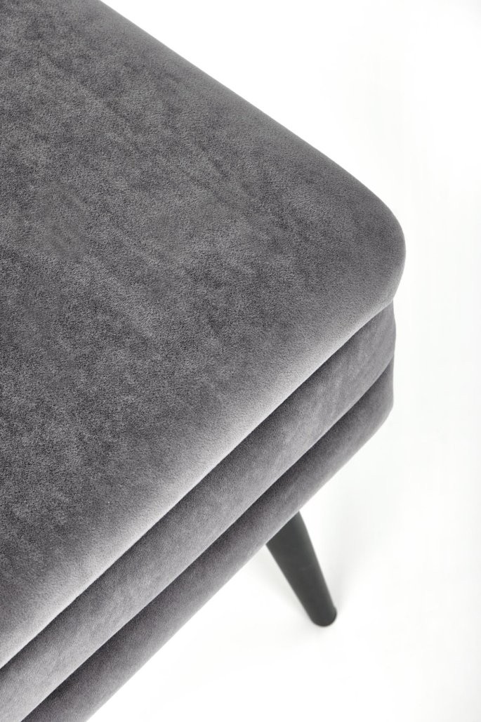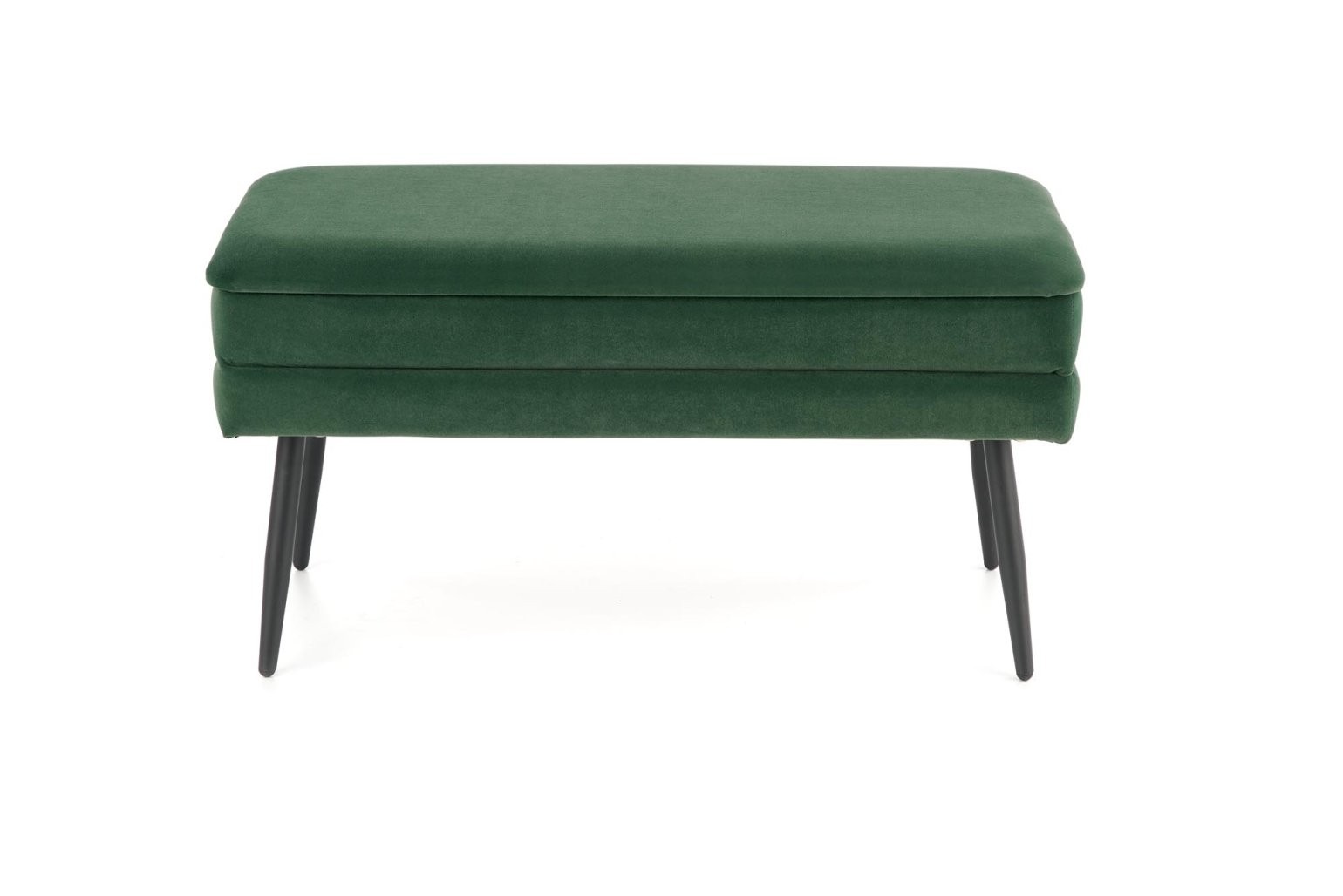 Tabure Blion s mogućnošću odabira boje, presvučen tamno zelenim ili sivim baršunom. Funkcionalan s prostorom za pohranu, metalne noge dodaju klasičan izgled.