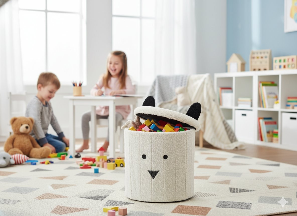 Može se koristiti kao dodatno sjedište, oslonac za noge ili kao dekorativan naglasak u dnevnom boravku, spavaćoj ili dječjoj sobi. Ugrađeni prostor za pohranu doprinosi urednijem prostoru. Sklopiva izvedba omogućuje jednostavno spremanje i uštedu prostora kada proizvod nije u upotrebi. Dimenzije 28 × 28 × 34 cm pomažu pri načrtovanju rasporeda.