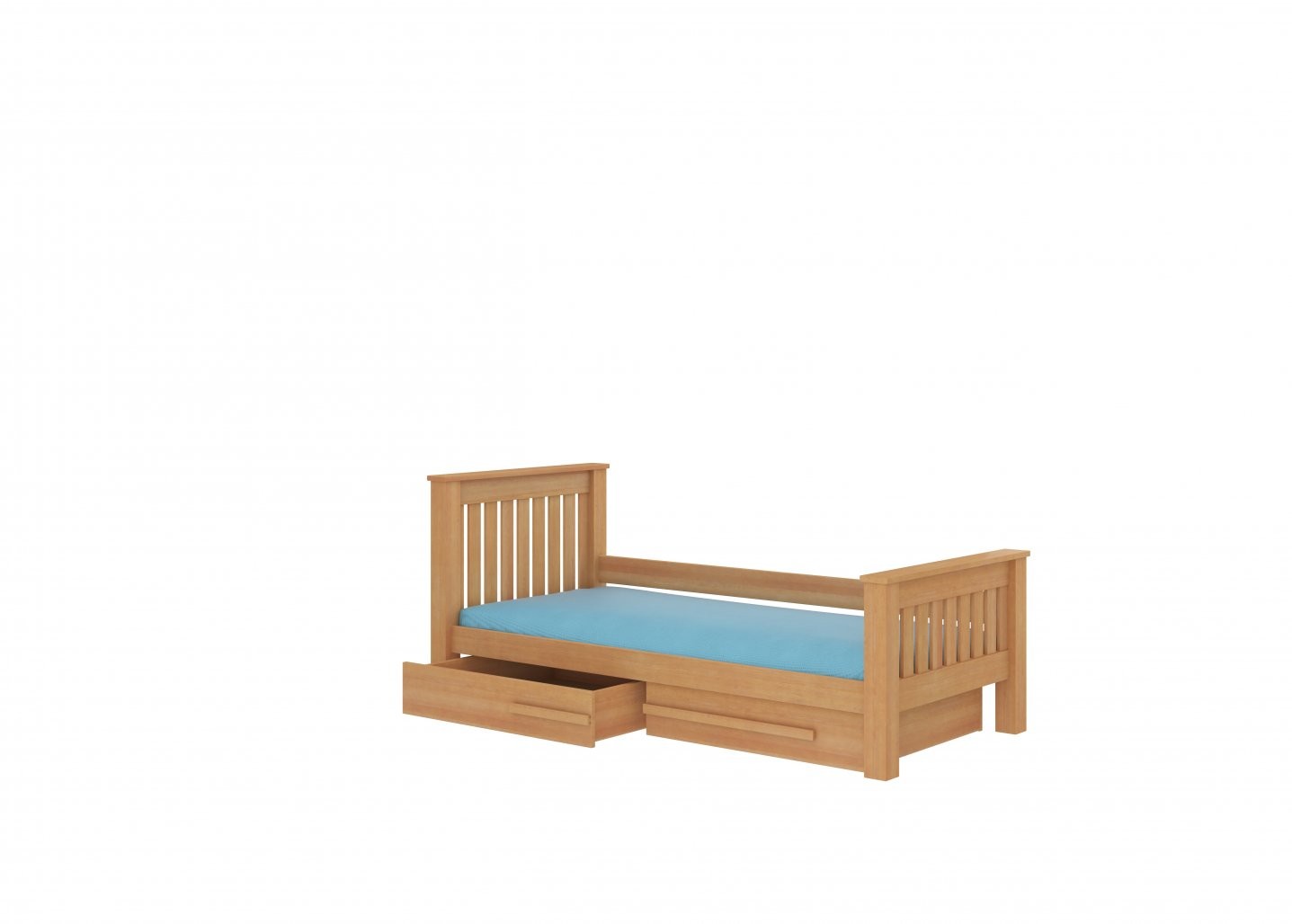 Krevet je izrađen od kvalitetnog borovog drva, što osigurava dugotrajnost i čvrstoću. U kompletu dolazi i čvrsti okvir od drvenih letvica, dok madrac nije uključen.