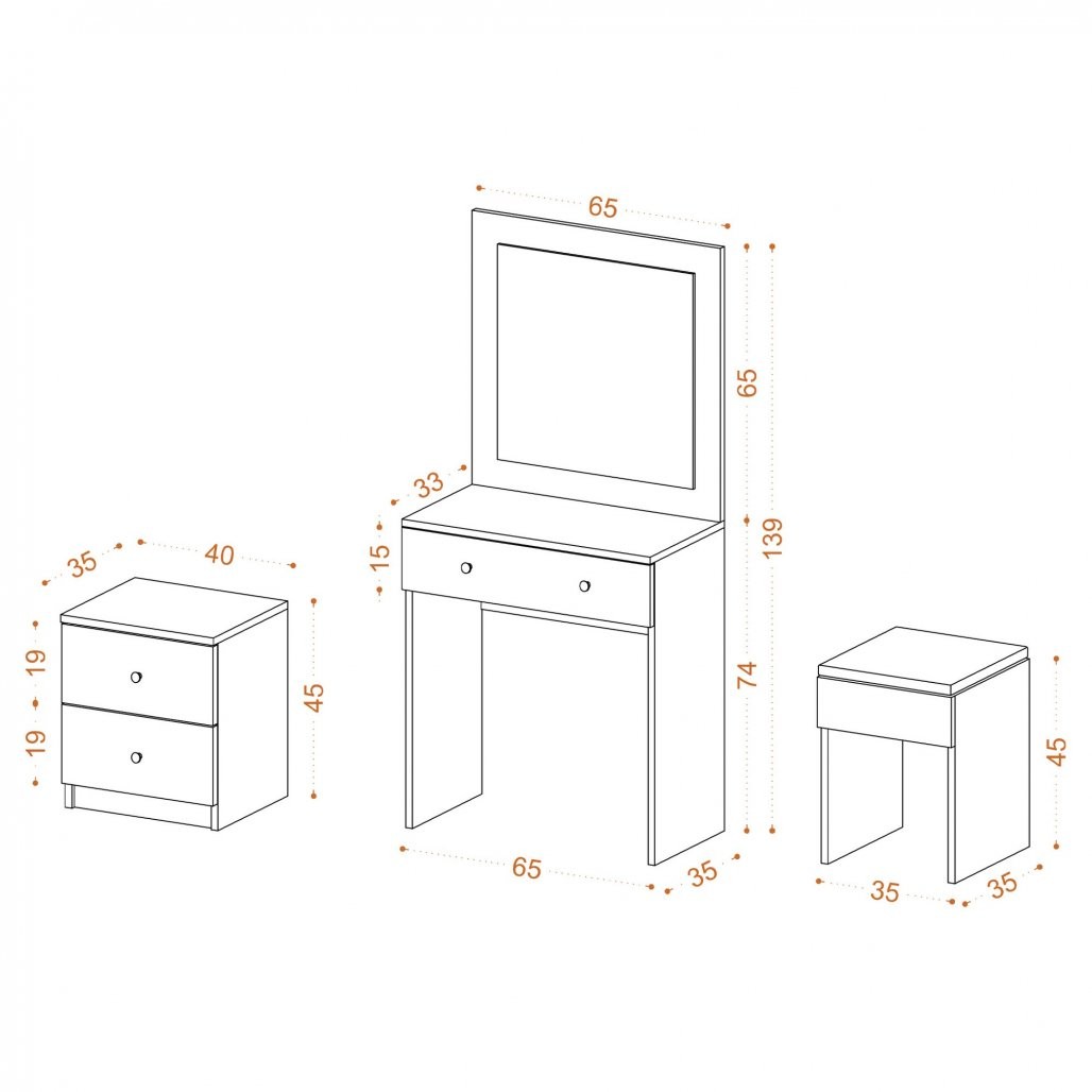 Oprostite se od pretrpanih površina i uživajte u urednosti. Stolić ima obilje prostora za pohranu, uključujući noćni ormarić i stolicu, kako bi vam sve kozmetičke potrepštine bile nadohvat ruke. Debljina ploče od 18 mm osigurava stabilnost, a mogućnost pričvršćivanja na zid dodatnu sigurnost.