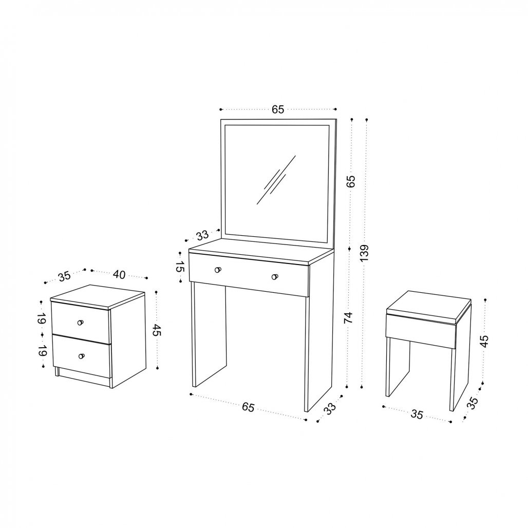Započnite dan s našim elegantnim toaletnim stolićem koji unosi stil i funkcionalnost u vašu svakodnevicu. Izrađen je od 100 % melaminom obložene iverice, što ga čini izdržljivim i dugotrajnim.