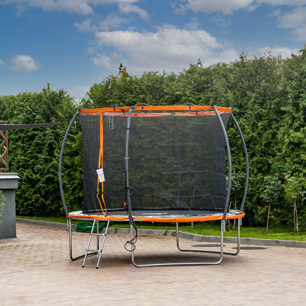 Veliki trampolin KOBE pogodan je za vrt, ima unutarnju mrežu veličine 180 cm, gdje se vaša djeca mogu sigurno zabaviti i skakati bez opasnosti. Mreža se zatvara patentnim zatvaračem. Kvalitetan je i pogodan za djecu, jer je sve prilagođeno sigurnosti, od mreže do tapeciranih nosača. Maksimalno opterećenje je 110 kg.