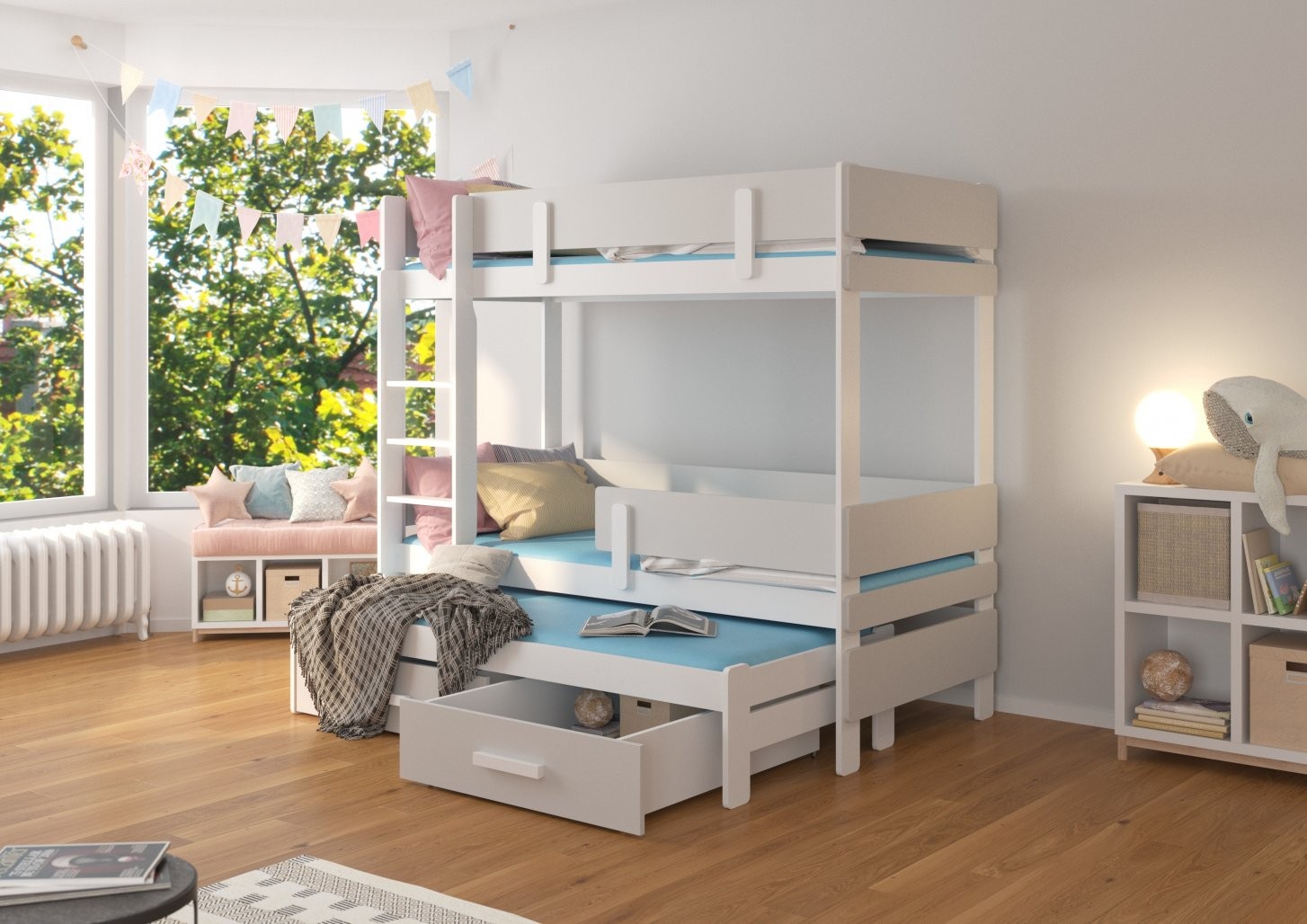 Trokrevetni dječji krevet ETAPO 200x90 je siguran, štedi prostor i dolazi s dvije ladice, ogradicama te izborom boja i širina.