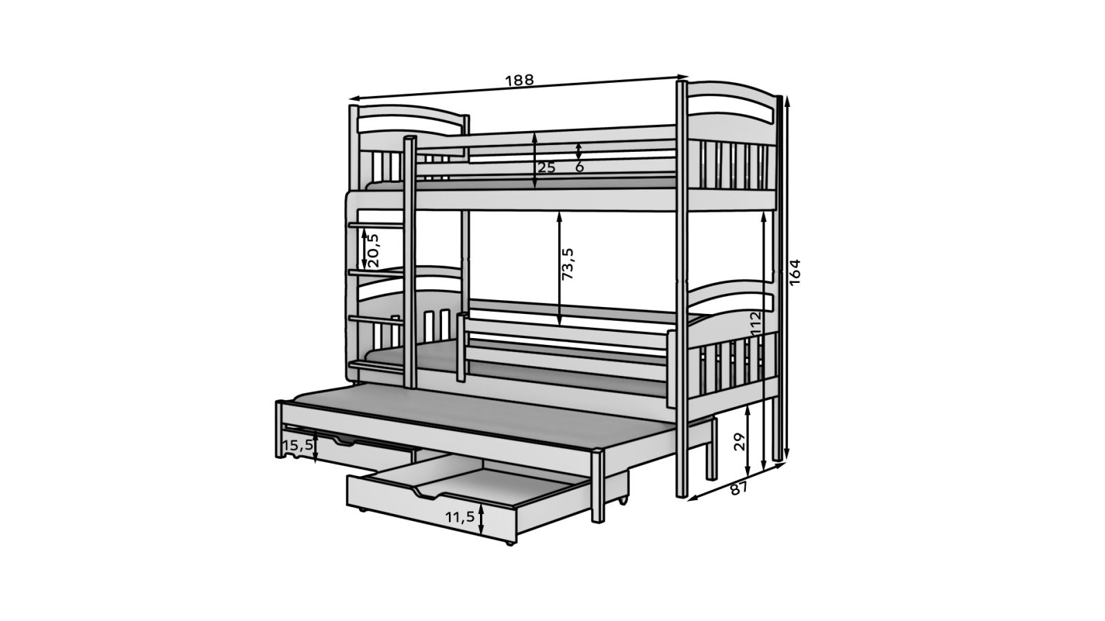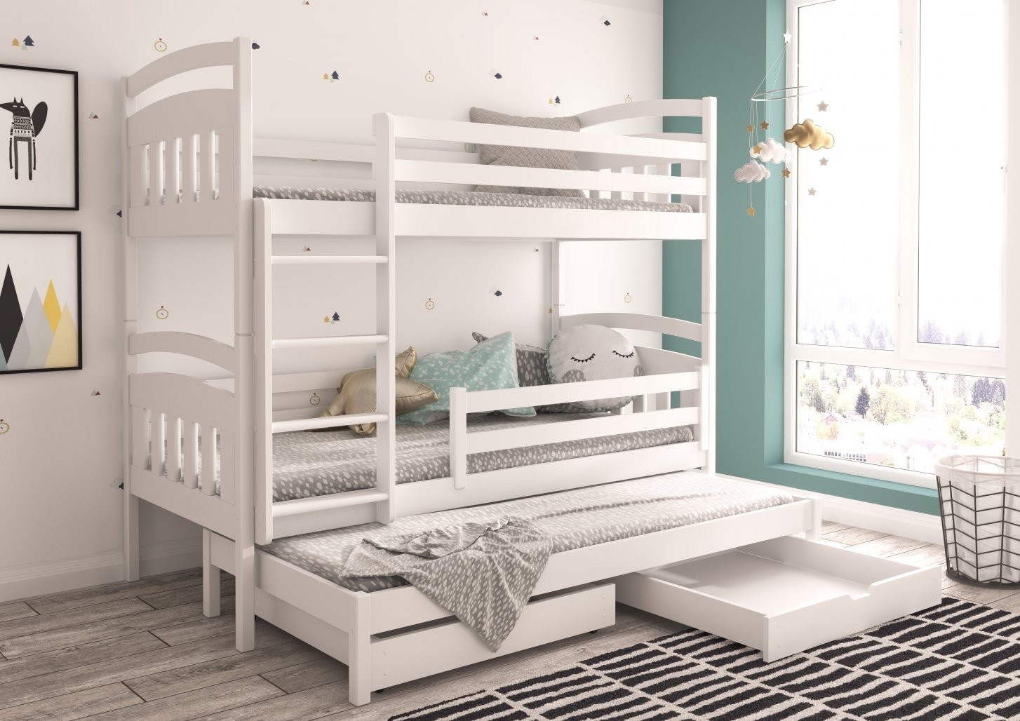 Troslojni dječji krevet ALDO 180x80 savršeno je rješenje za uštedu prostora u manjim dječjim sobama. Sa svojom funkcionalnošću i modernim dizajnom omogućuje udoban i siguran san za troje djece.