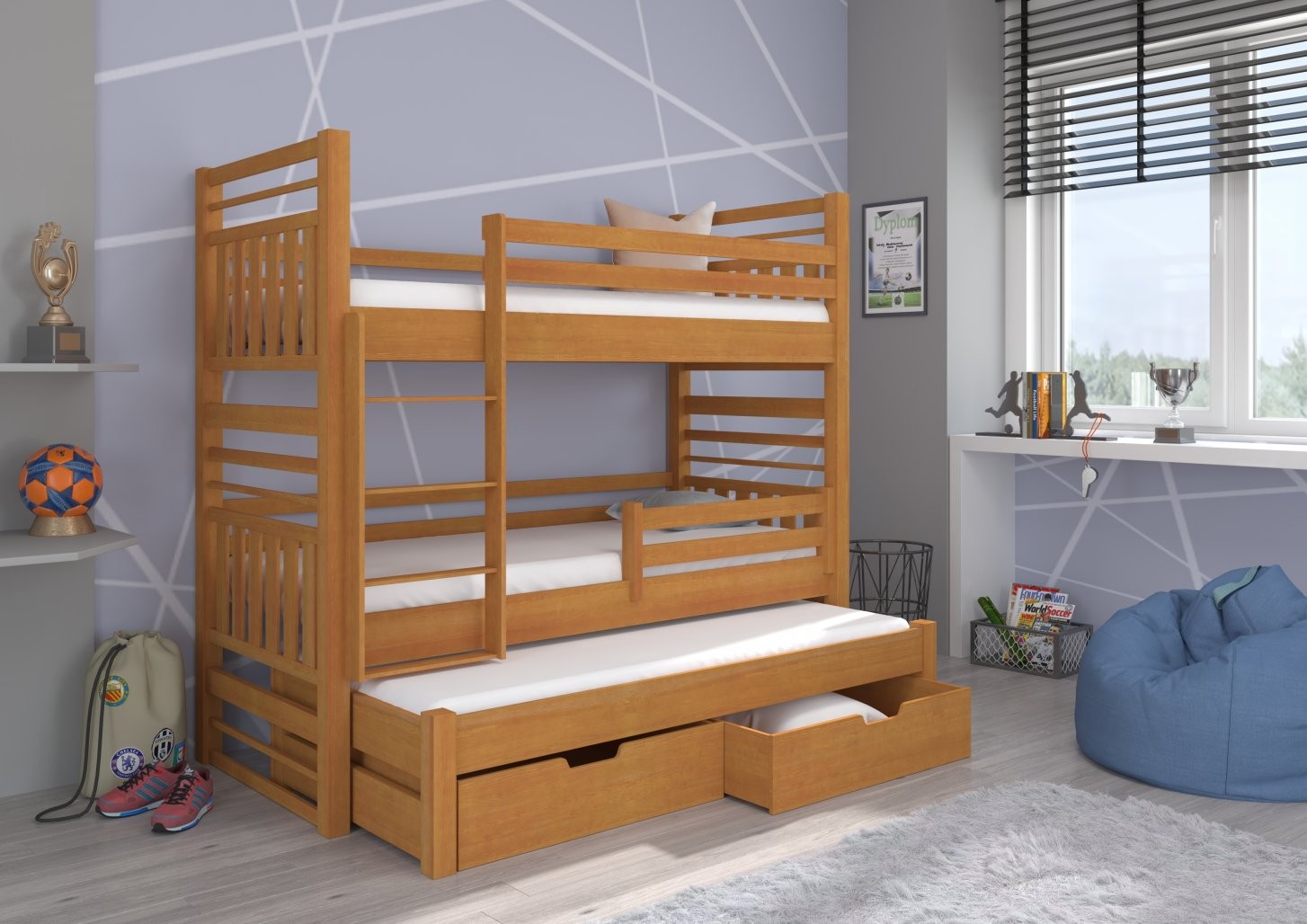 Troslojni dječji krevet HIPPO 200x90 savršeno je rješenje za uštedu prostora u manjim dječjim sobama. Svojim modernim dizajnom i funkcionalnošću nudi udoban i siguran san za troje djece.
