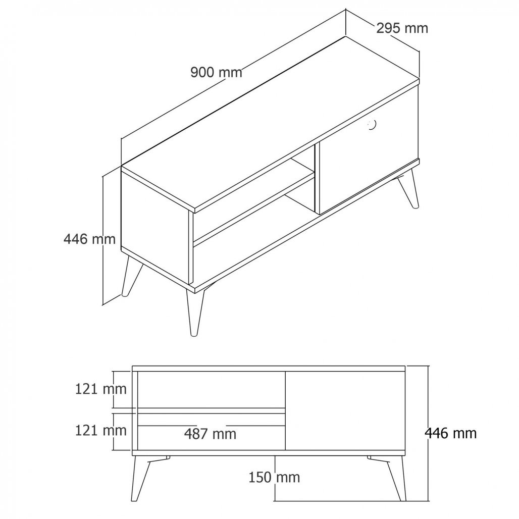 Izrađena od 100 % iverice presvučene melaminom, ova TV komoda jamči dugotrajnost. Debljina od 18 mm osigurava stabilnost, dok noge visine 15 cm dodaju elegantan izgled.