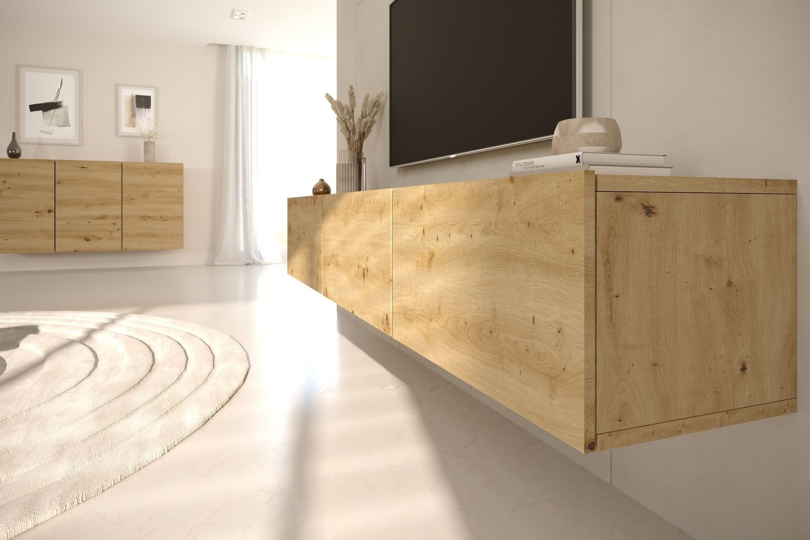 TV ormarić David 160 zidno je rješenje za dnevni prostor koje spaja čist izgled, funkcionalnost i suvremen dizajn. Izrađen je od oplemenjene iverice i dostupan u više boja, pa ga je lakše uskladiti s različitim ambijentima.