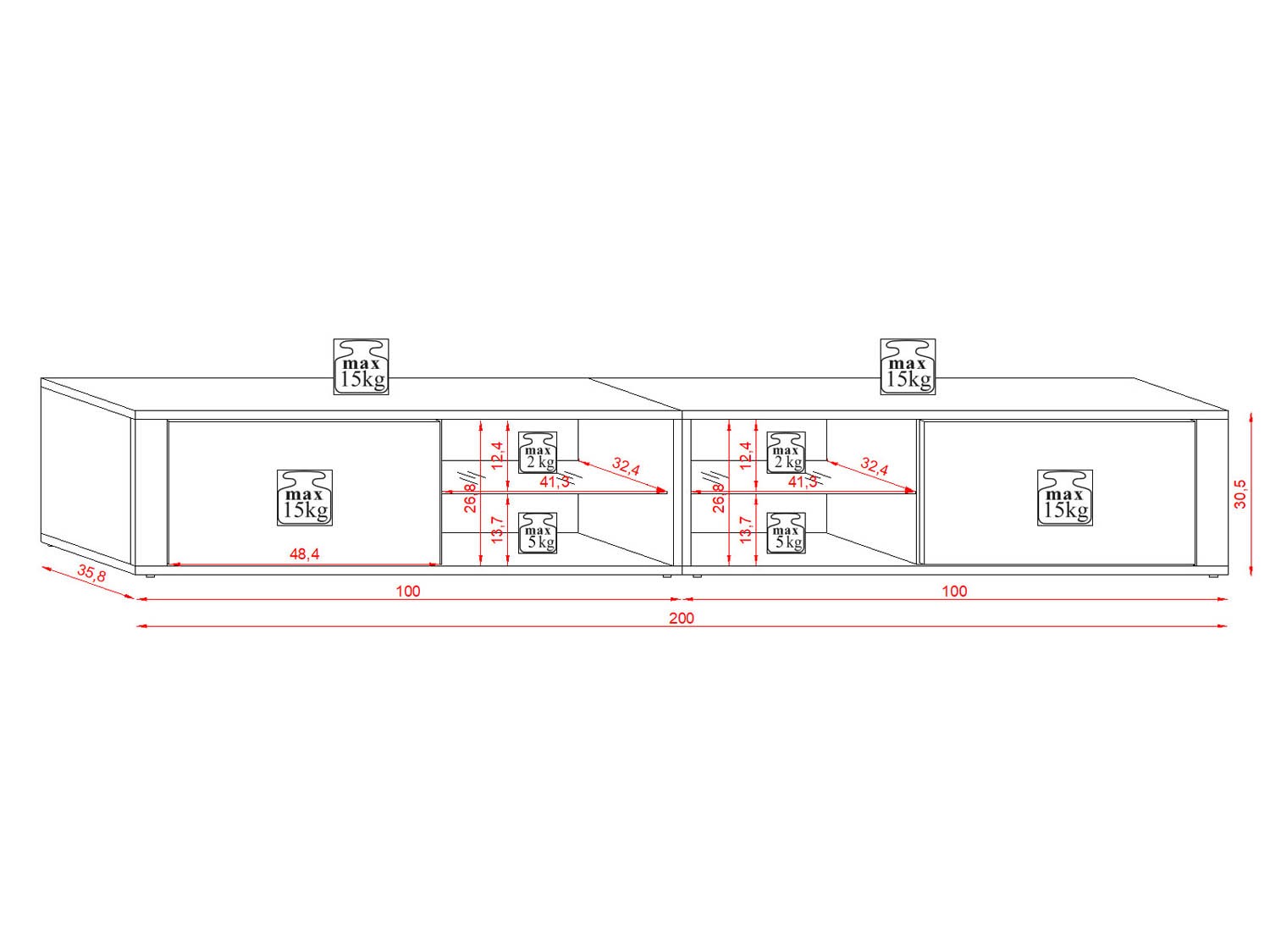 | Dimenzije (širina x visina x dubina): | 200x30,5x35,8 cm |