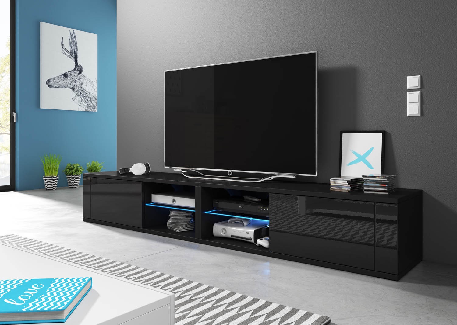 Je li došlo vrijeme za nov namještaj? Sa TV ormarić ELSA 2 crna visoki sjaj/mat crna 200 cm + LED će vaš dom sa lakoćom postati udobniji i stilski savršen. Dekorirajte vaš dnevni boravak TV regalom, sa kojim će vaš dom izgledati veći i uredno pospremljen. Vaš dom vam ne nudi puno prostora? U toj situaciji trebate biti još posebno pažljivi kod odabira vašeg namještaja.Ako u vašem domu nema puno prostora, određivanje rasporeda može biti prilično težak posao. Zato je ovaj TV regal dizajniran sa namjenom da stvori vaš dom prostranijim, a ujedno i udobnijim.