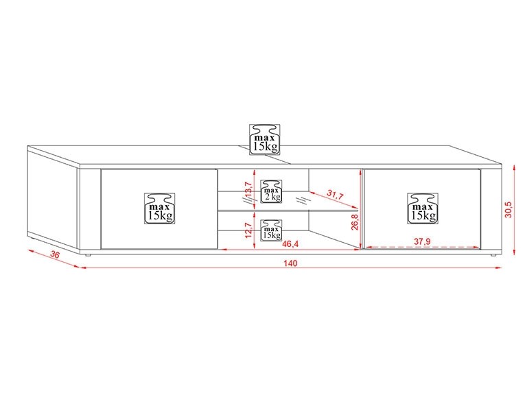 | Dimenzije (širina x visina x dubina): | 140x30,5x36 cm |
