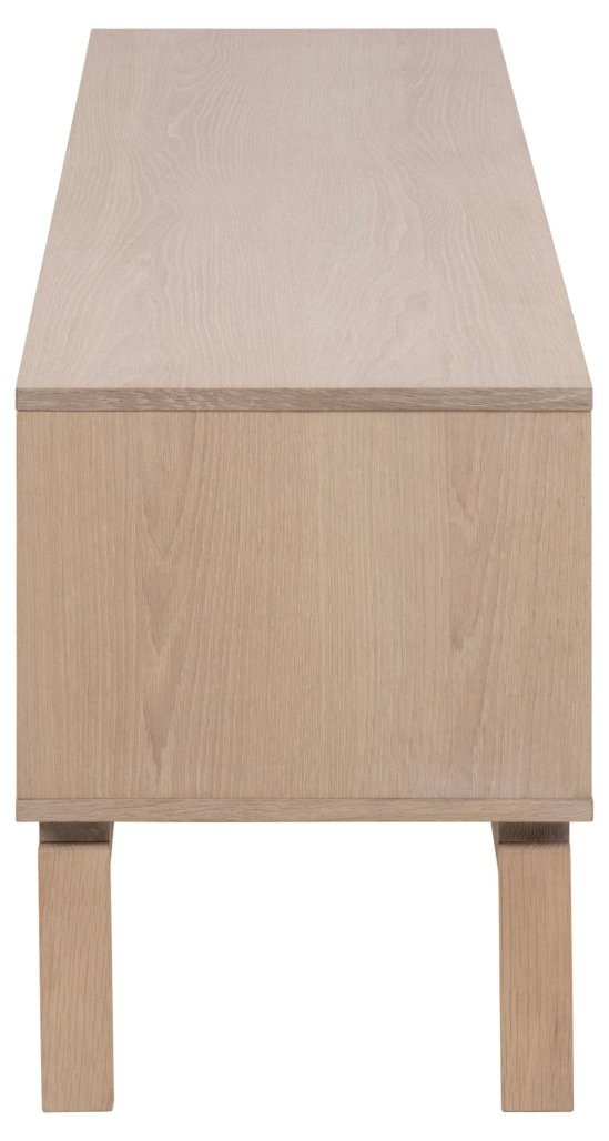 TV ormarić HELIAN svojim čistim i harmoničnim dizajnom nudi prekrasnu estetiku i praktičnost u isto vrijeme. S sofisticiranim detaljima poput lamela na frontama koje stvaraju optičku iluziju, ovaj bijeli pigmentirani hrastovi TV ormarić suptilno će privući vašu pažnju, a da ne odvlači previše. HELIAN ne samo da izgleda fantastično, već nudi i puno prostora za pohranu vaše opreme i predmeta za kućnu zabavu iza vrata ili na policama.