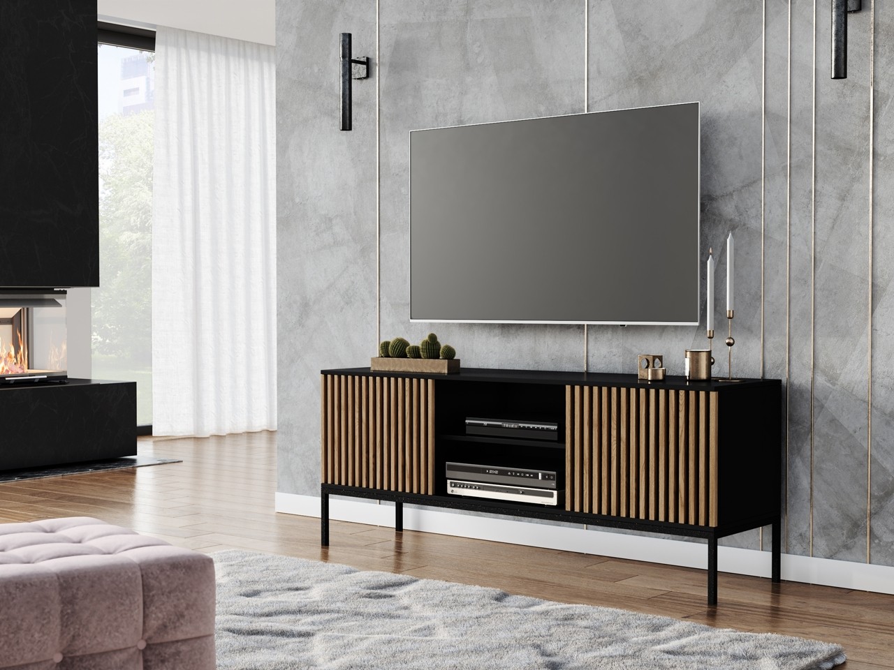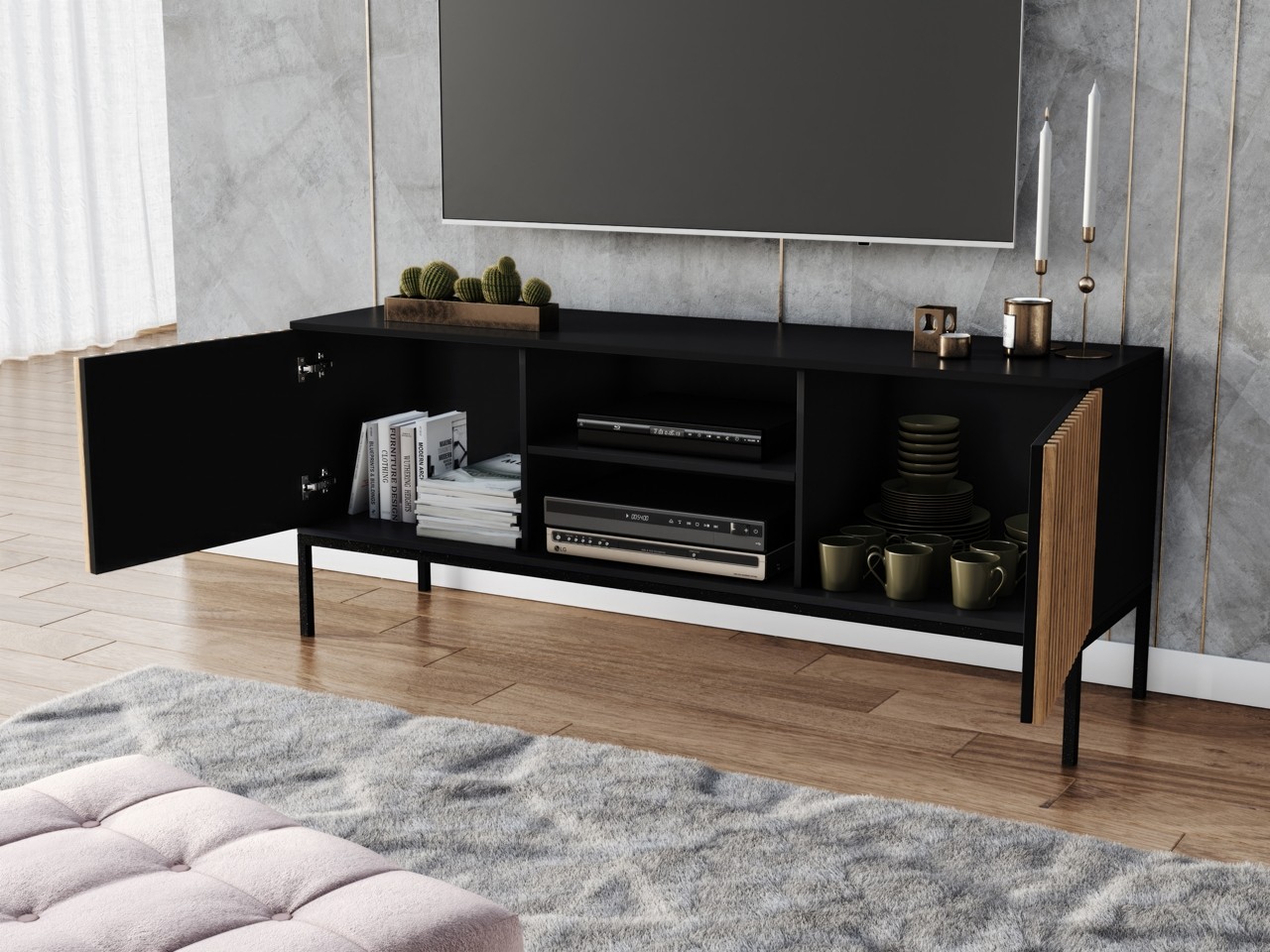 TV ORMARIĆ MEORATI je estetski i moderan ormarić koji će savršeno odgovarati modernom namještaju. Ormarić sadrži dvoja vrata u koja možete spremiti elektroničke uređaje i druge predmete koje volite. Ormarić dodaje eleganciju vašem dnevnom boravku.