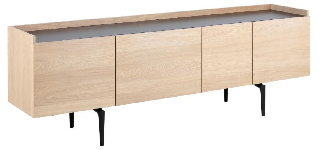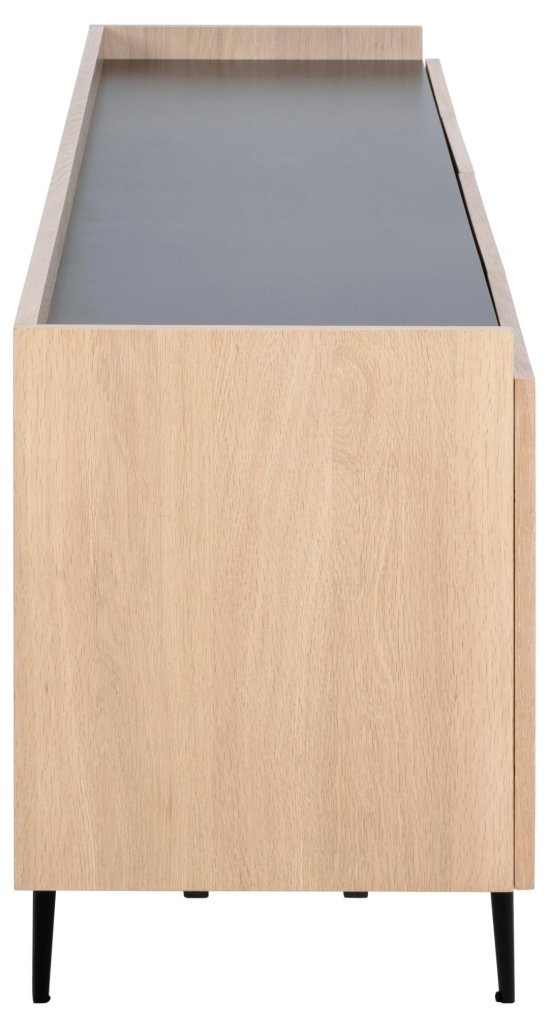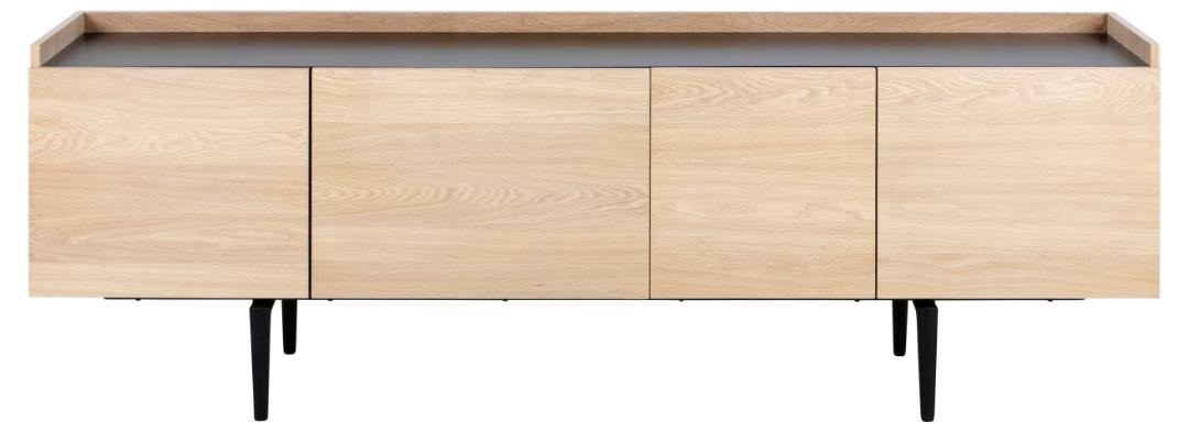 TV ormarić SALL ističe se suvremenim i elegantnim izgledom kroz kombinaciju kontrastnih boja i materijala. Površina ormarića od izmudrene bijele pigmentirane, lakirane mediapan ploče je nadopunjena grubo prašno lakiranim nogama u mat crnoj boji. Iza četiri vrata nalazi se puno prostora za pohranu, koji ostavlja vrh ploče slobodan za vaše omiljene ukrasne predmete. Prednost kupnje ovog ormarića je ugrađena funkcija 'push to open', koja omogućava jednostavno i elegantno otvaranje vrata.