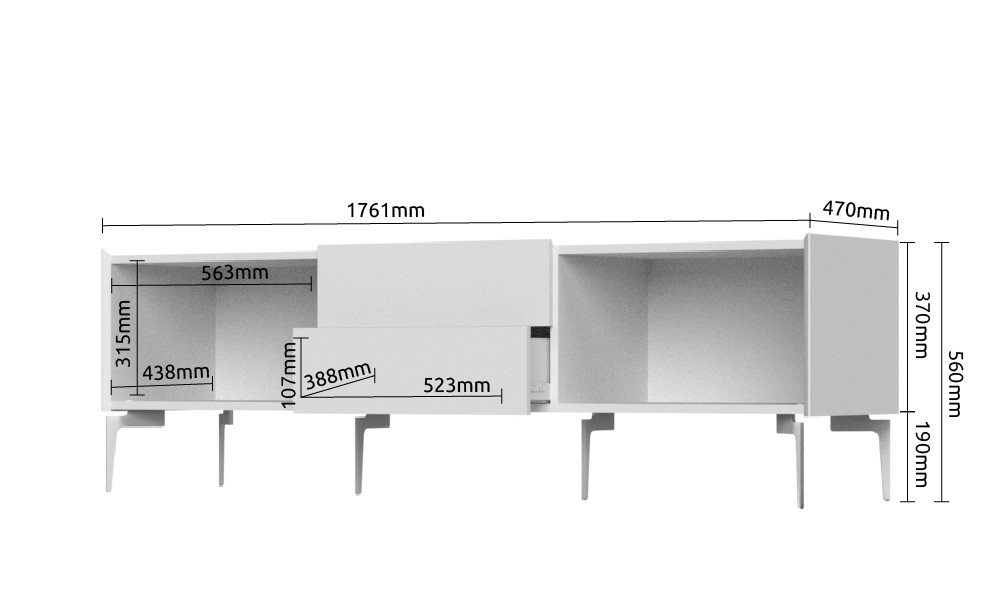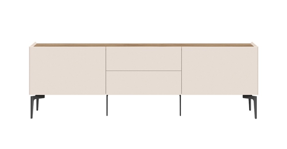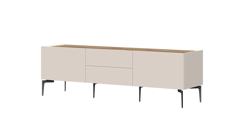 Počastite se kvalitetnim i modernim TV ormarićem SKY 45 - 176 CM koji će vas impresionirati svojom prostranošću i funkcionalnošću. Ormarić sadrži dvije ladice i dvoja vrata koja će osigurati da dnevni boravak uvijek bude uredan. Elegantan izgled osiguravaju metalne noge u zanimljivom obliku, koje daju točku na i.