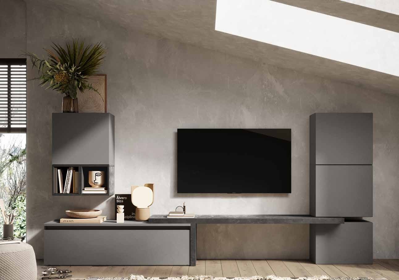 TV ormarić u škriljasto/olovno sivoj boji INFINITY 2.0 900018-ADPB predstavlja elegantno i funkcionalno rješenje za vaš dnevni boravak. Moderan dizajn i profinjeni materijali stvaraju savršen balans između estetike i praktičnosti, omogućujući lako prilagođavanje različitim prostorima i stilovima uređenja.