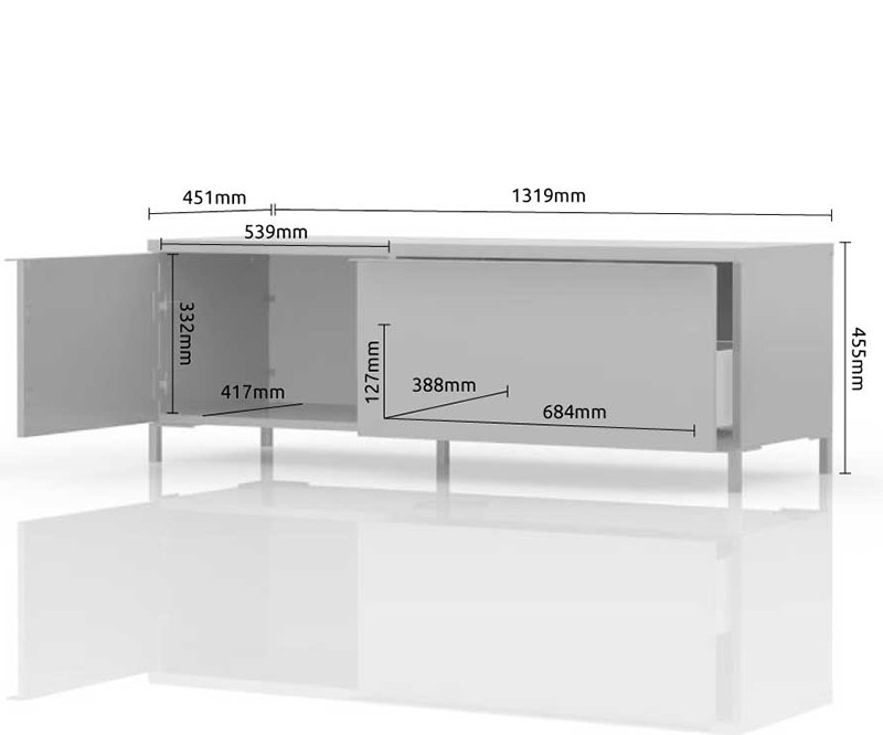 TV regal RADDA ONYX je na svim vanjskim djelovima premazana UV lakom, koji stvara visoki sjaj. Visoki sjaj nudi namještaju elegantniji i otmjeniji izgled, zbog čega će vaša spavaća soba uvijek izgledati odlično te biti u središtu pažnje.