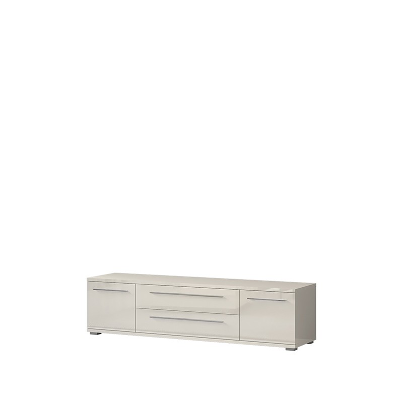 TV regal RADDA PIANO podijeljen je na dvoje vrata te dvije prostorne ladice, pa možete tako u njega pospremiti brojne DVD-je, društvene igre, te druge predmete po željite i tako sačuvati vaš dnevni boravak čistim i organiziranim. Dostupan je u bež boji u visokom sjaju, koja će vašem domu dodati više svjetlosti i elegancije. Izrađen je od oplemenjene iverne ploče, koja je na vanjskim djelovima lakirana UV lakom, koji je od ostalih lakova čak 4-puta otporniji na ogrebotine i oštećenja. Regal sadrži funkciju tihog zatvaranja, koja omogućava dugotrajnu bezbrižnu upotrebu. TV regal je dio modularnog dnevnog boravka RADDA PIANO, koji sadrži više od 40 artikala, između kojih možete birati te tako sebi stvoriti unikatan dnevni boravak iz snova!