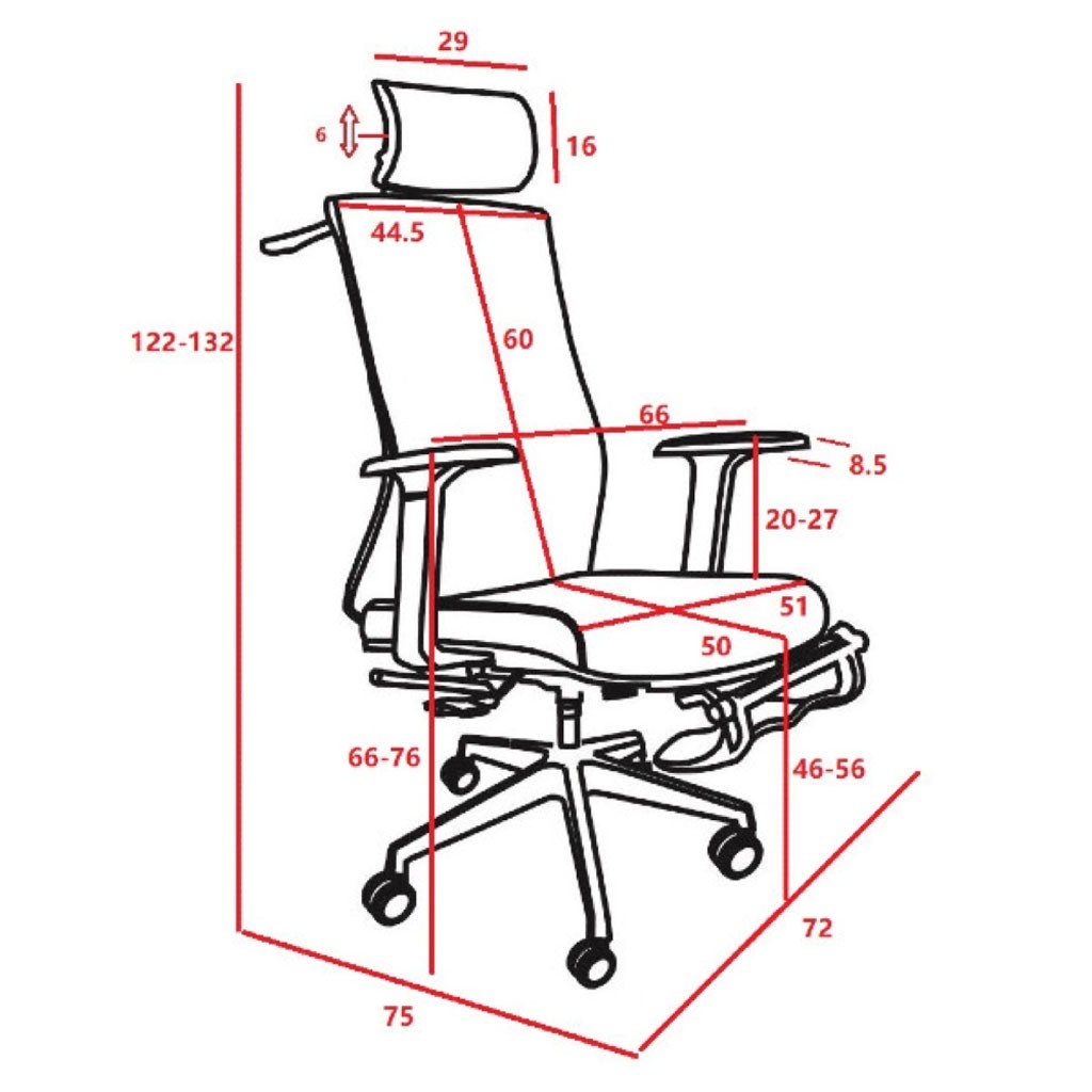 Baza je izrađena od najlona i ima 5 poliuretanskih kotača. Maksimalno opterećenje stolice je 100 kg. Naslon za leđa ima podesivu lumbalnu potporu.