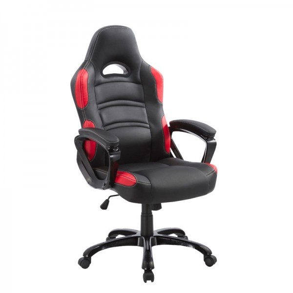 Uredska stolica MAVIS je napravljena iz umjetne kože (PU) u crni boji s kombinacijom crvene ili bijele boje. Stolica se vrti i podesiva je po visini. Visina sjedišta je 42-49 cm. Rukonaslon so na vrhu tapecirani. Postolje je u crni boji s gumiranim kotačima.