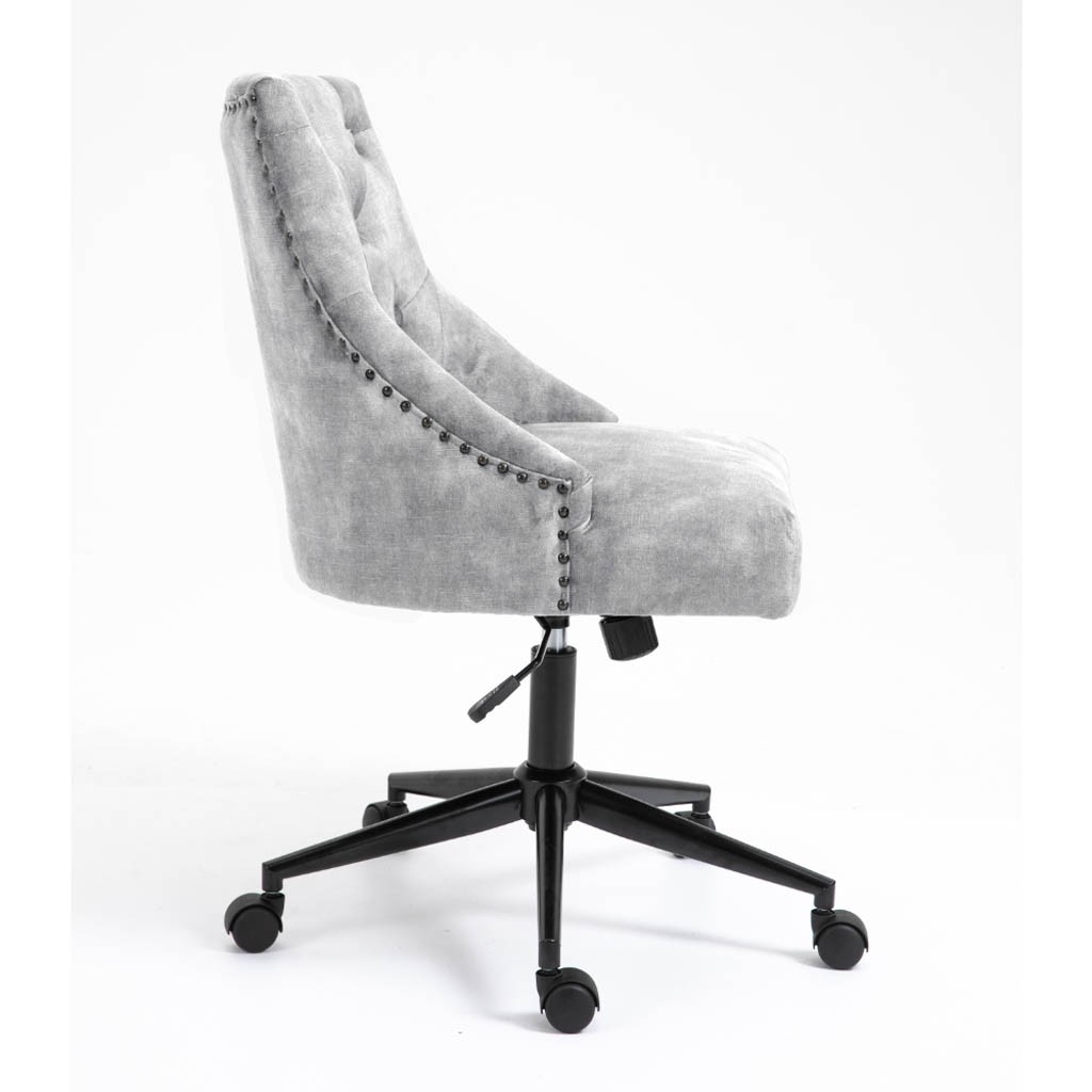 Udobna i elegantna uredska stolica TIPA dostupna je u svijetlo sivoj boji. Sjedalo i naslon su debelo podstavljeni mekom tkaninom za udobnije sjedenje i prošiveni ukrasnim šavovima za bolji izgled. Maksimalno opterećenje je 120 kg.