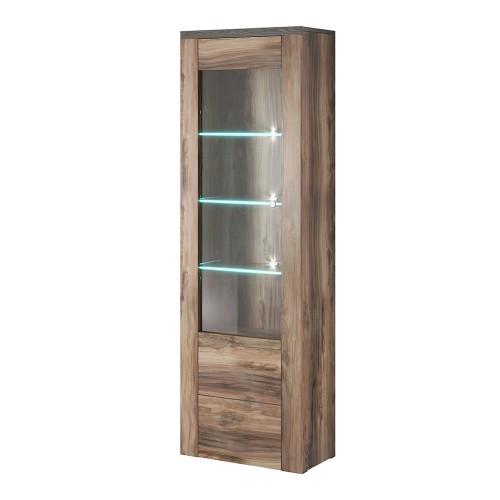 Uska vitrina MALTA prikladna je i za manje stanove kojima je potrebno dodatno spremište i skladišni prostor. U nju možete staviti stvari koje želite imati na vidljivom mjestu. Dostupna je u kombinaciji boja sibirskog ariša i oraha.