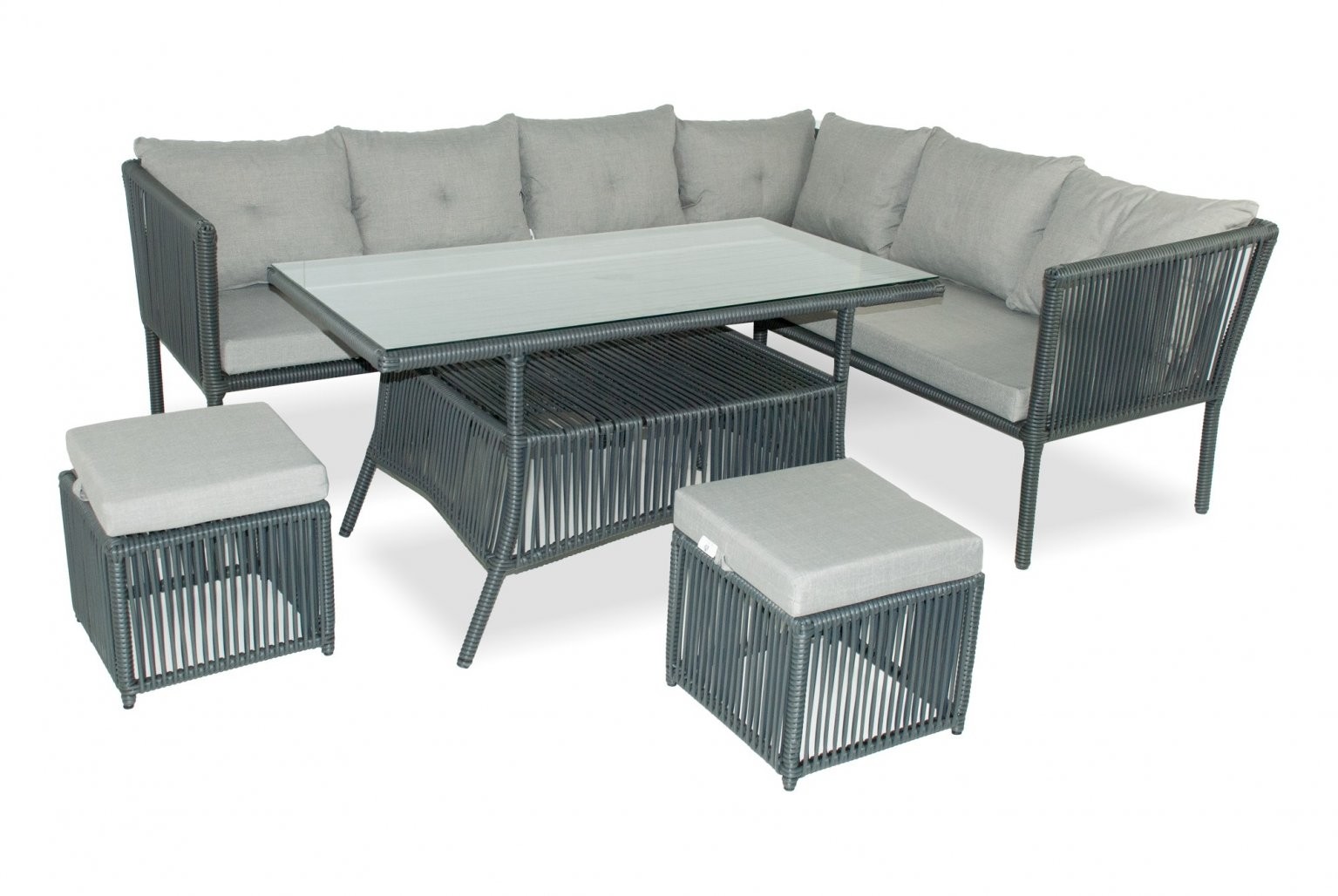 Neka vaš vrt postane vaša oaza opuštanja s našom velikom kutnom vrtnom garniturom Calista. Značajna funkcionalnost ovog komada namještaja je njen prostrani dizajn koji omogućuje udobno sjedenje za više ljudi, što je idealno za obiteljske ručkove ili zabave na otvorenom. Prednost kupovanja ove garniture je njena svestranost, jer uključuje kutni kauč, stol i dva taburea koji osiguravaju dodatna mjesta za sjedenje ili prostor za noge. Calista je dizajnirana za vašu udobnost i bez sumnje će postati srce vašeg vrta.
