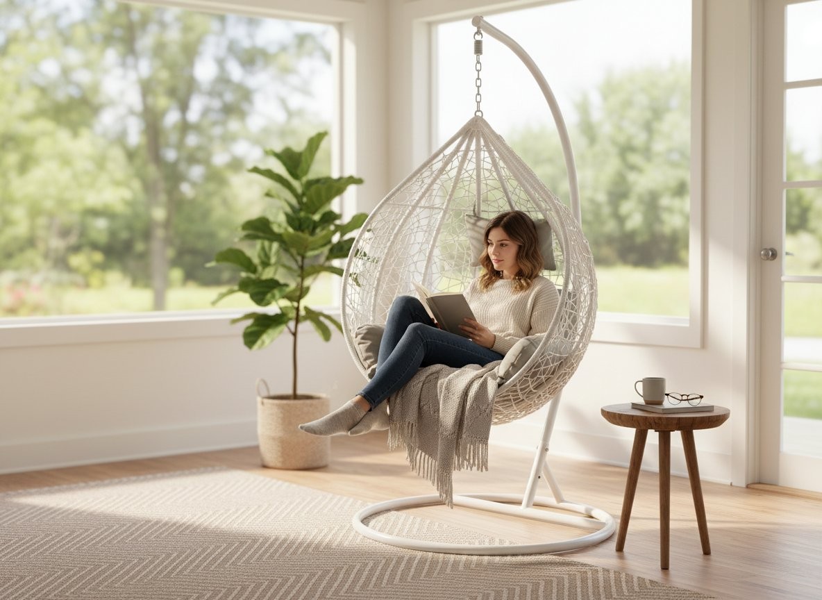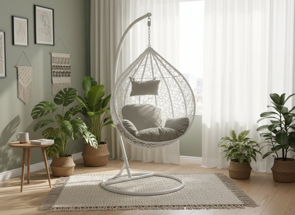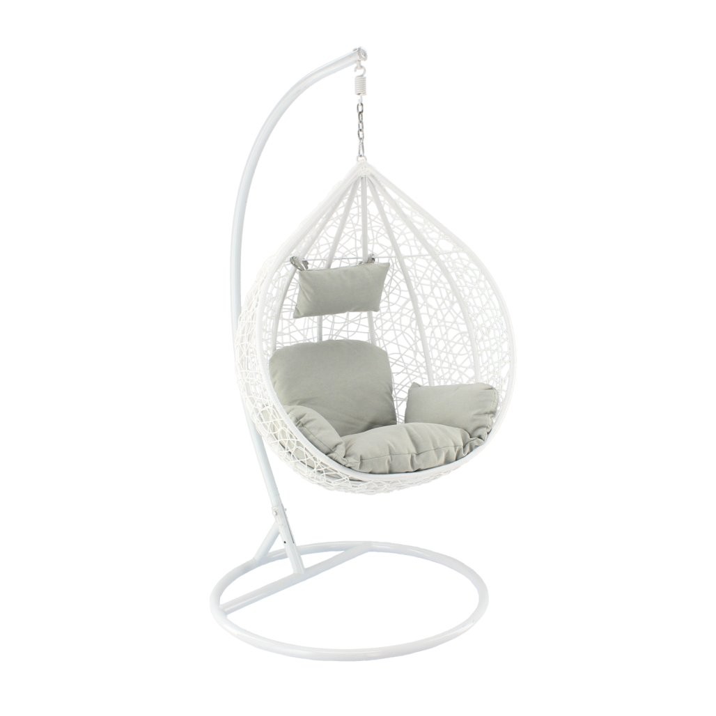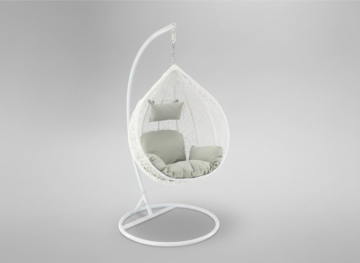 Viseća fotelja Mizan (bijela s sivo jastukom) je udoban komad za opušteno sjedenje i ugodan izgled ambijenta. Kombinacija boja bijela i siva stvara usklađen izgled proizvoda. U izradi su korišteni materijali kao što su čelik i tehnoratan.