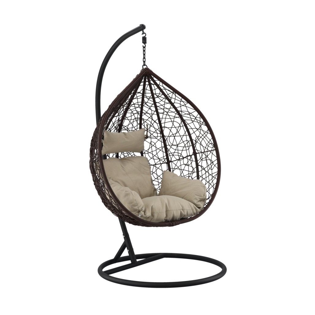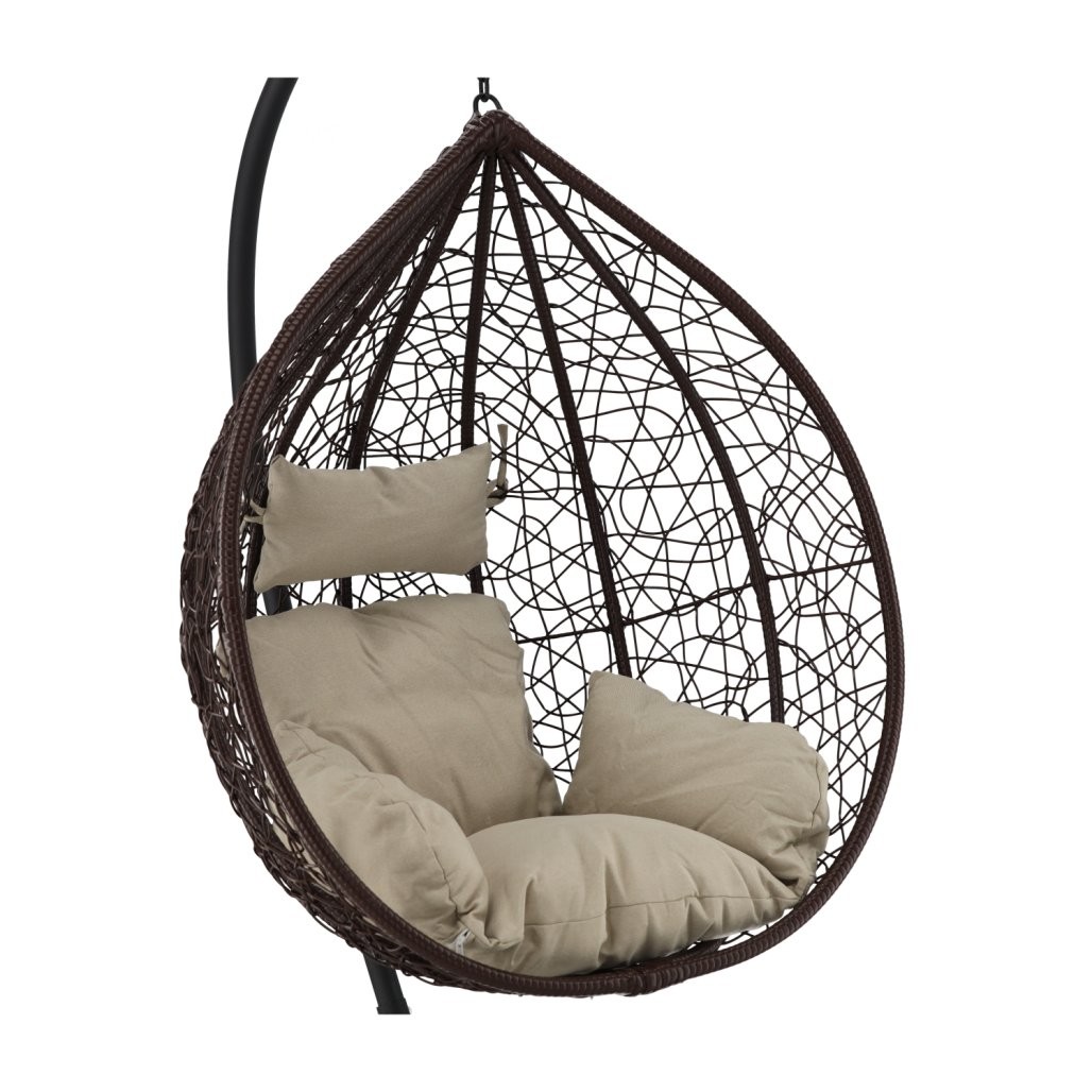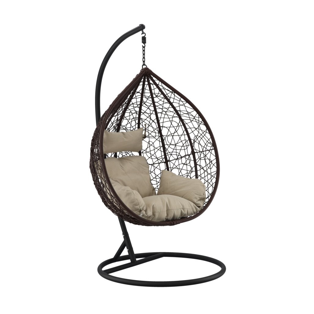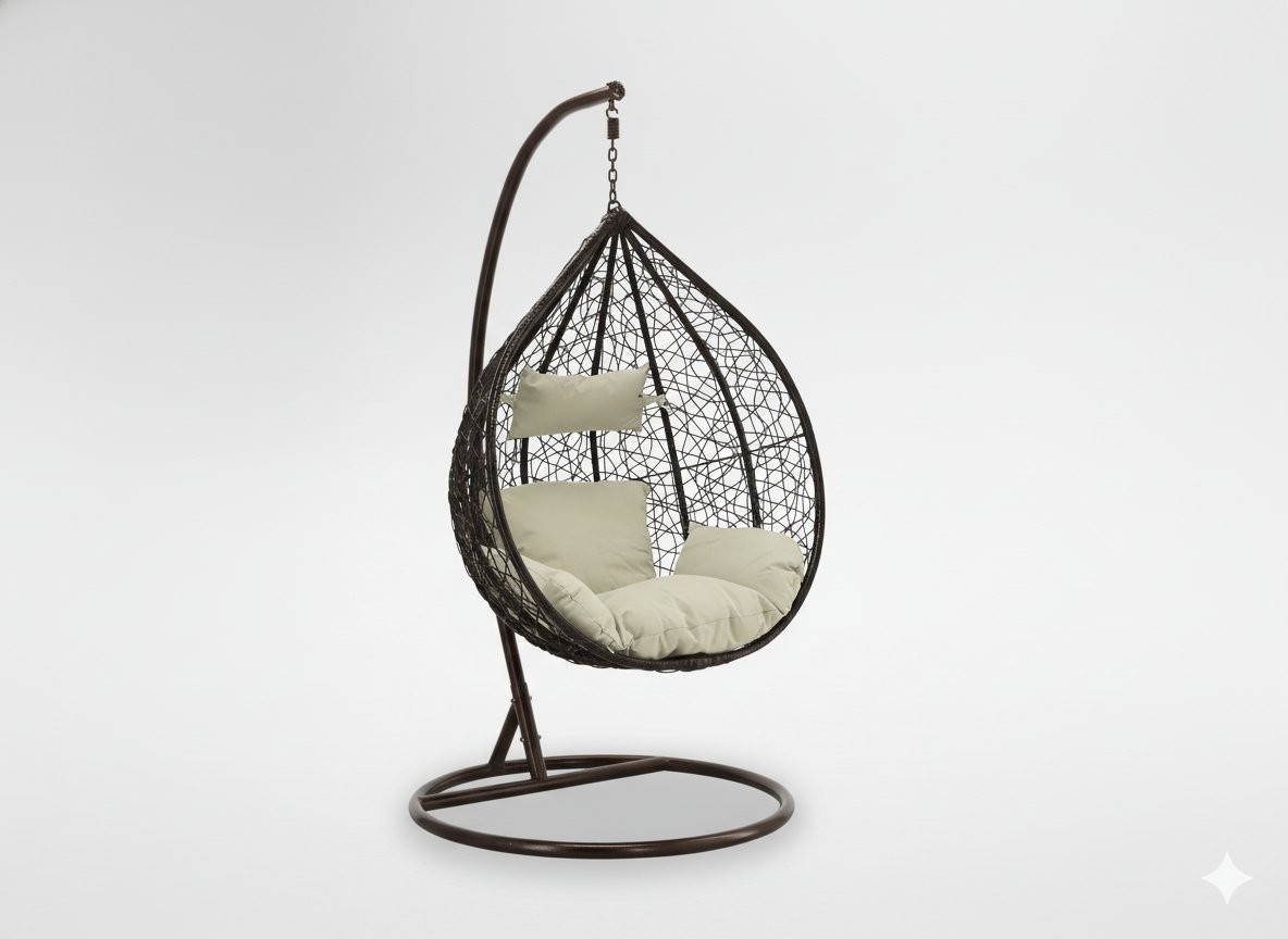 Viseća fotelja Neris (smeđa s bež jastukom) je udoban komad za opušteno sjedenje i ugodan izgled ambijenta. Kombinacija boja smeđa, bež, naravna i krem stvara usklađen izgled proizvoda. U izradi su korišteni materijali kao što su čelik i tehnoratan.