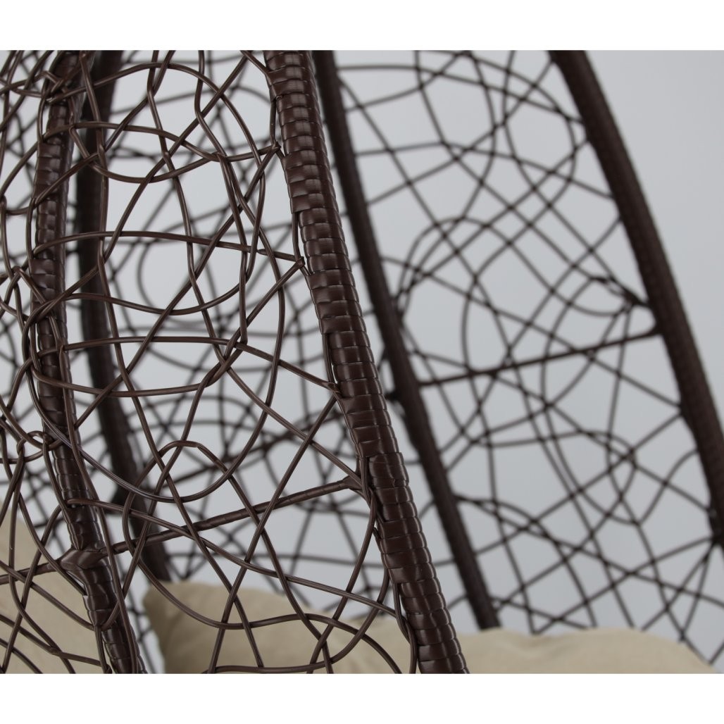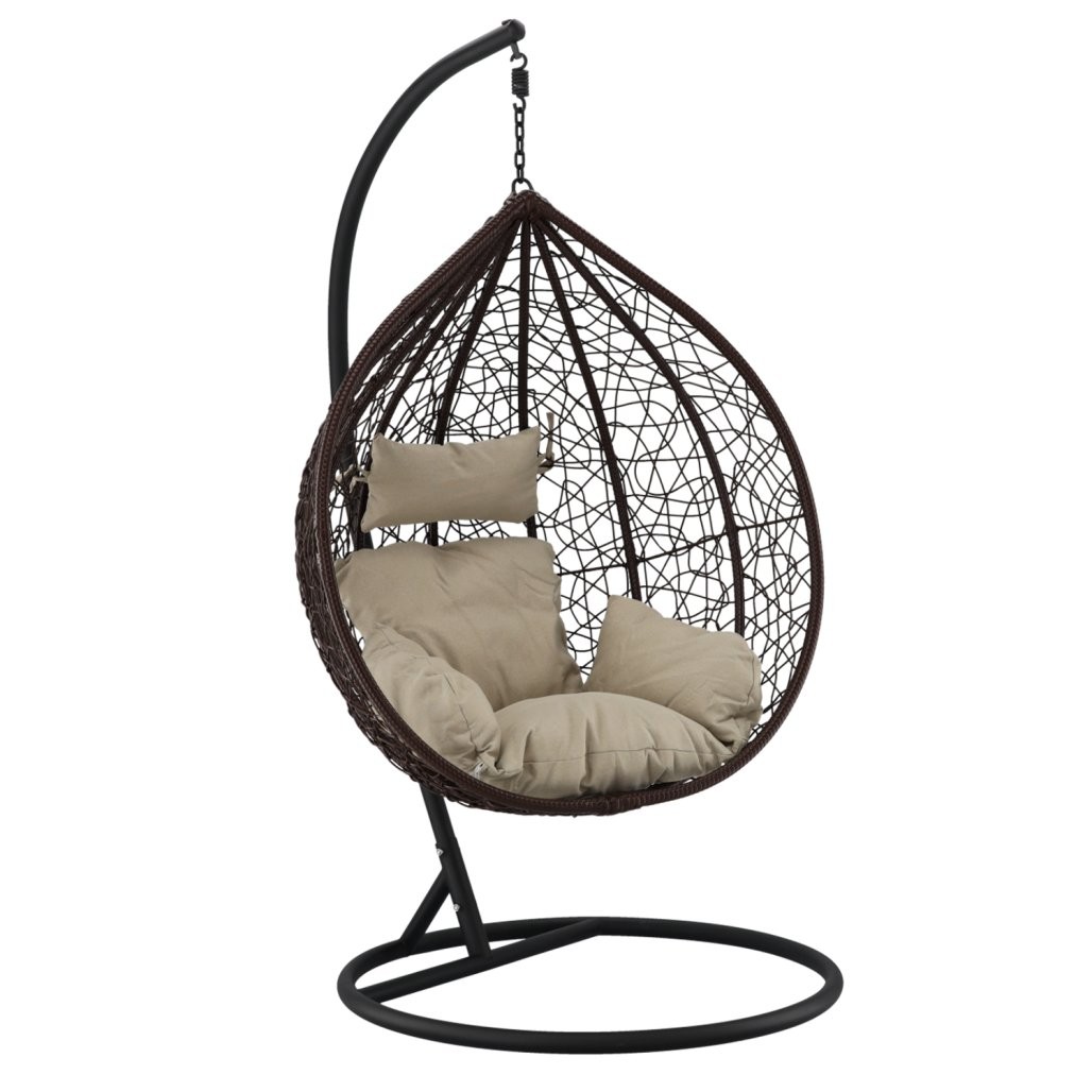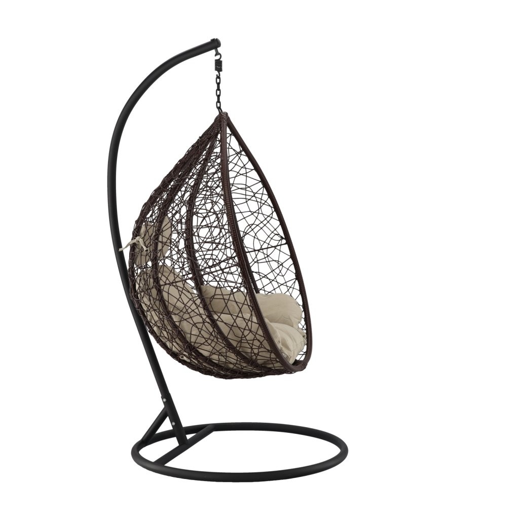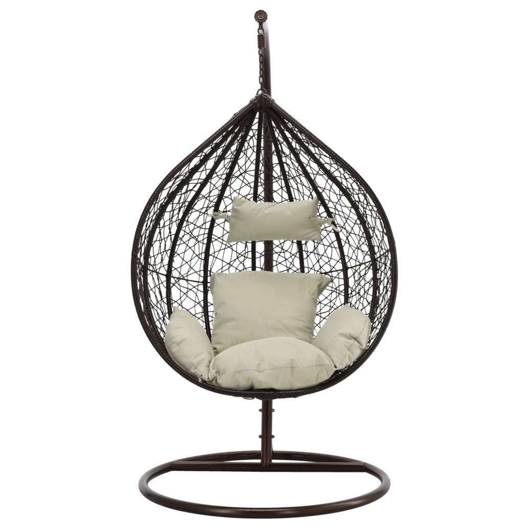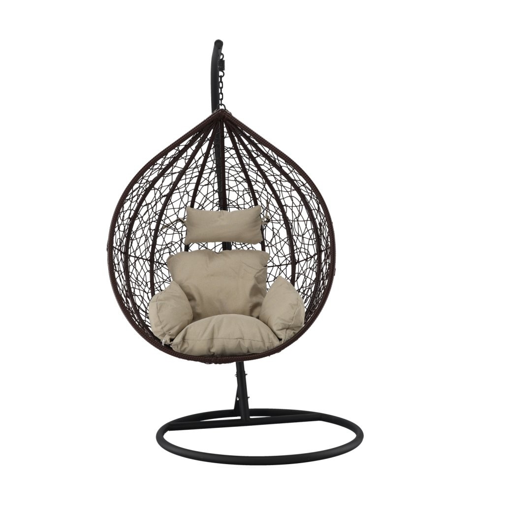 Viseća fotelja Neris (smeđa s bež jastukom) je udoban komad za opušteno sjedenje i ugodan izgled ambijenta. Kombinacija boja smeđa, bež, naravna i krem stvara usklađen izgled proizvoda. U izradi su korišteni materijali kao što su čelik i tehnoratan.