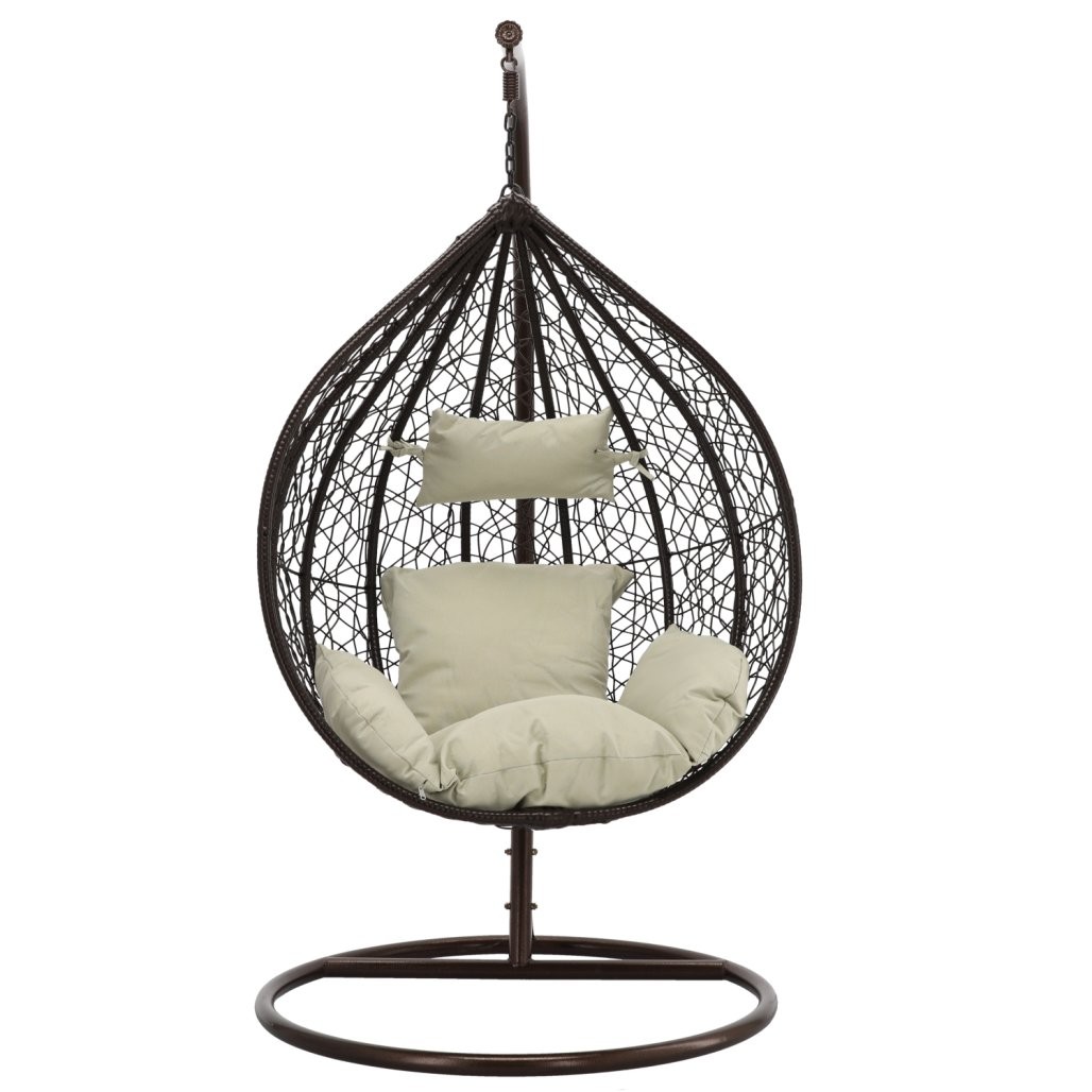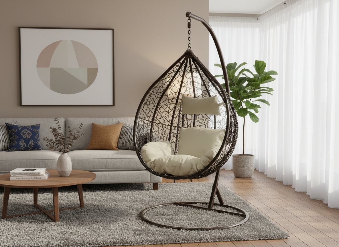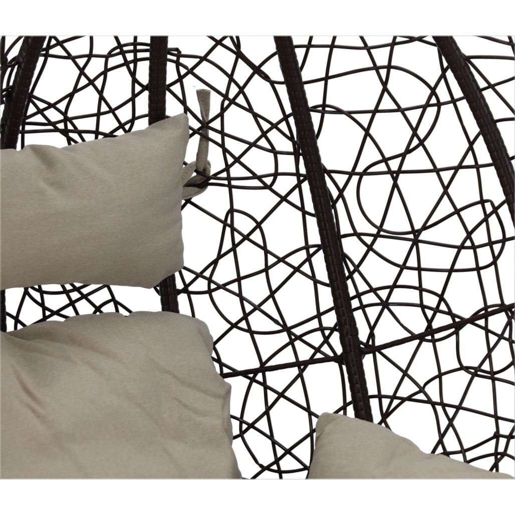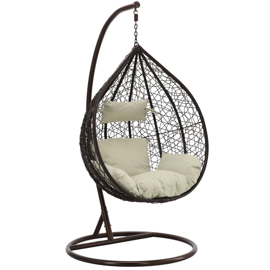 Viseća fotelja Neris (smeđa s bež jastukom) je udoban komad za opušteno sjedenje i ugodan izgled ambijenta. Kombinacija boja smeđa, bež, naravna i krem stvara usklađen izgled proizvoda. U izradi su korišteni materijali kao što su čelik i tehnoratan.